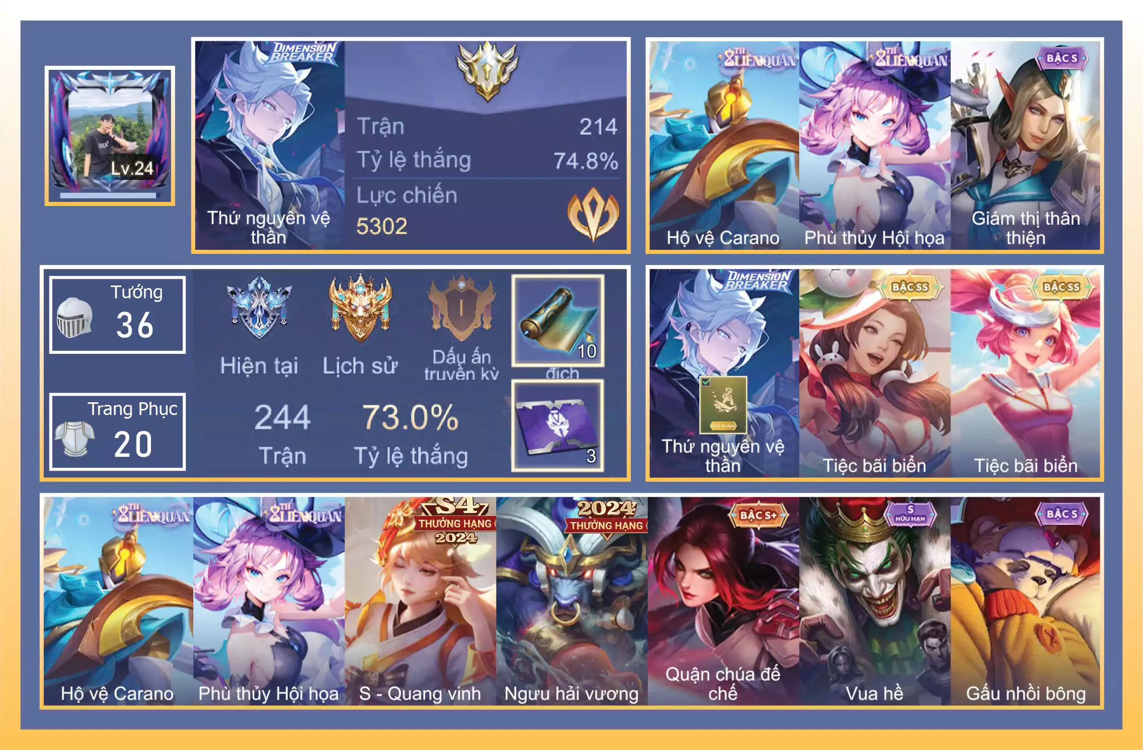 Loại acc | MUA ACC LIÊN QUÂN VIP: SKIN SSS, ANIME, CỤC VÀNG, MÁC THÁCH ĐẤU |