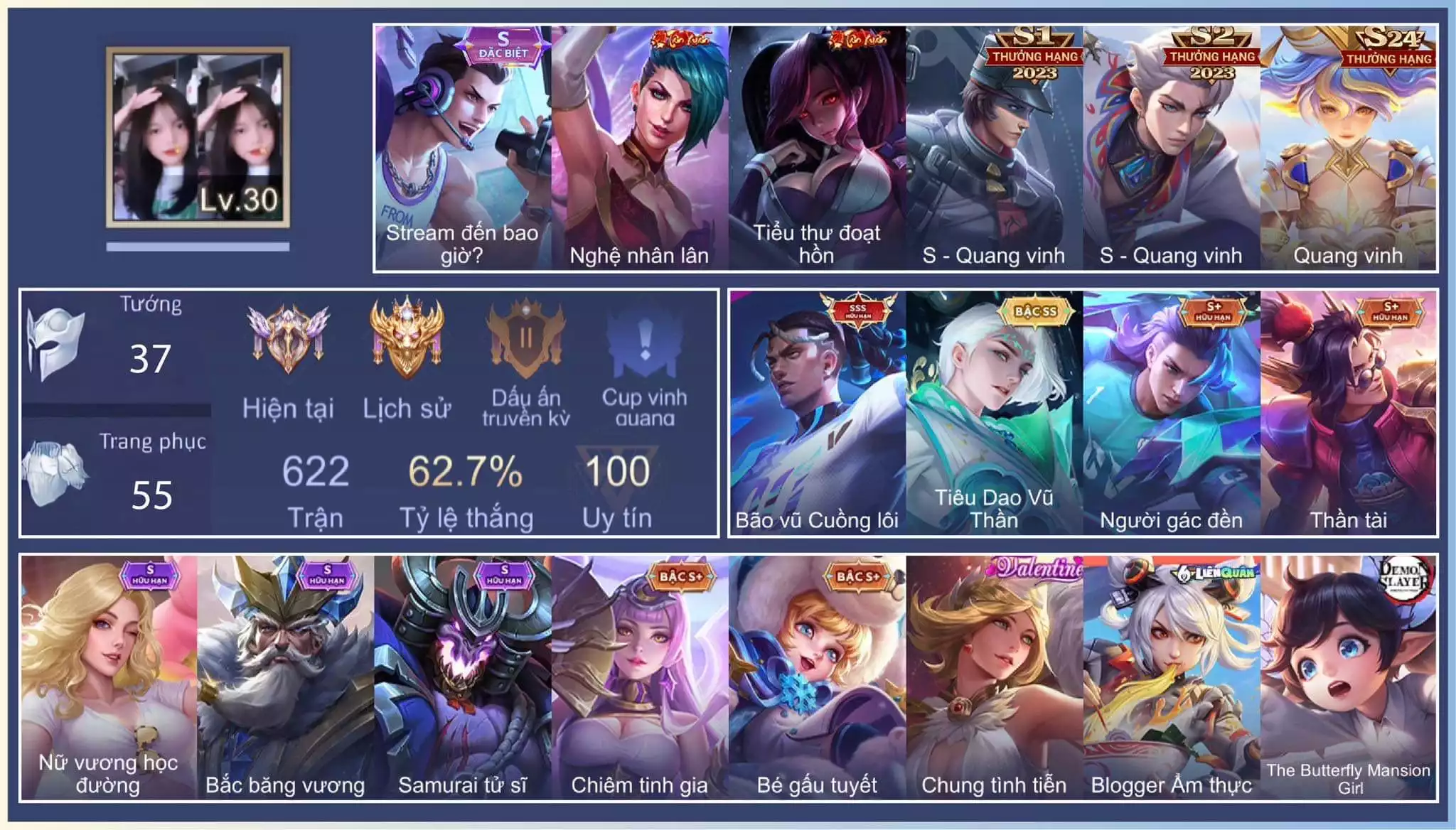 Loại acc | MUA ACC LIÊN QUÂN VIP: SKIN SSS, ANIME, CỤC VÀNG, MÁC THÁCH ĐẤU |