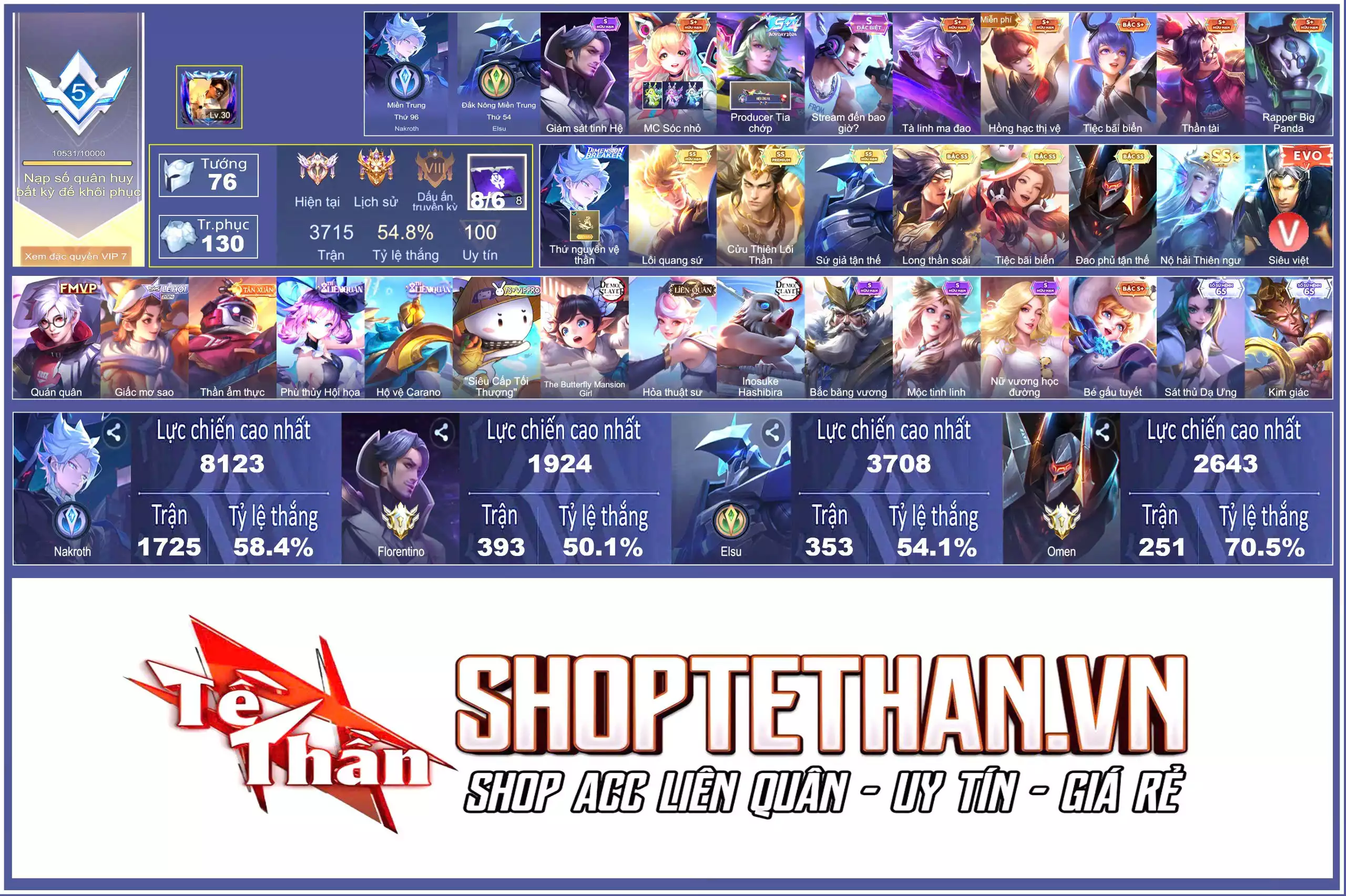 Loại acc | MUA ACC LIÊN QUÂN VIP: SKIN SSS, ANIME, CỤC VÀNG, MÁC THÁCH ĐẤU |