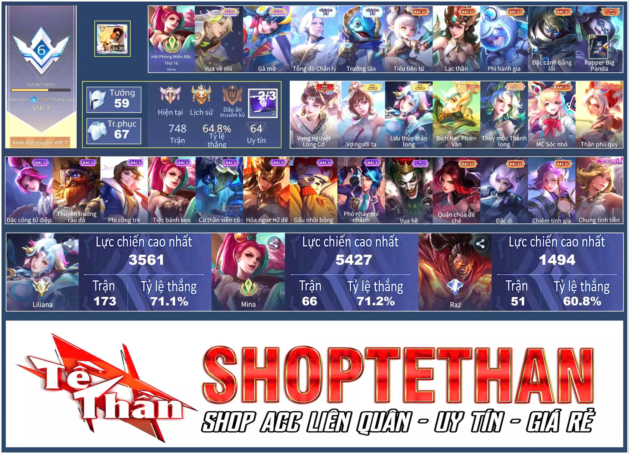 Loại acc | MUA ACC LIÊN QUÂN VIP: SKIN SSS, ANIME, CỤC VÀNG, MÁC THÁCH ĐẤU |