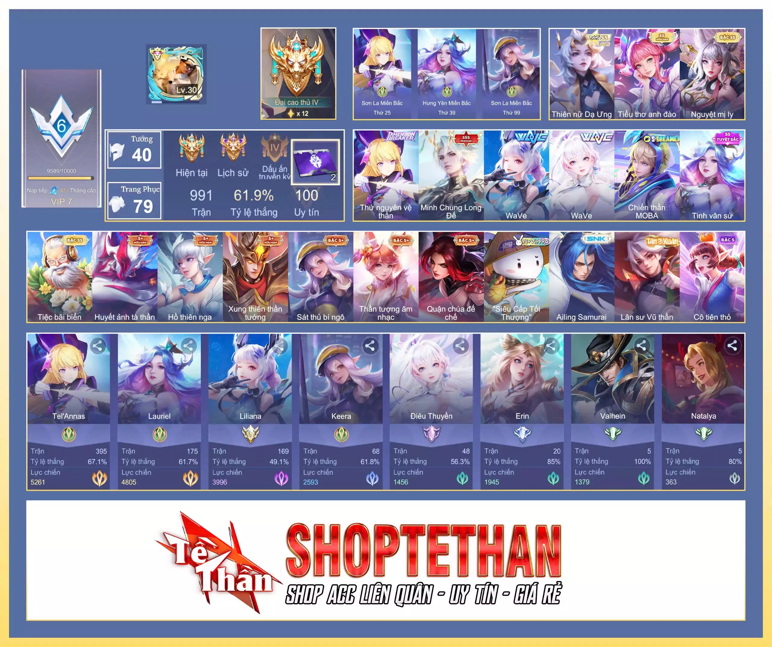 | Loại acc | MUA ACC LIÊN QUÂN VIP: SKIN SSS, ANIME, CỤC VÀNG, MÁC THÁCH ĐẤU |