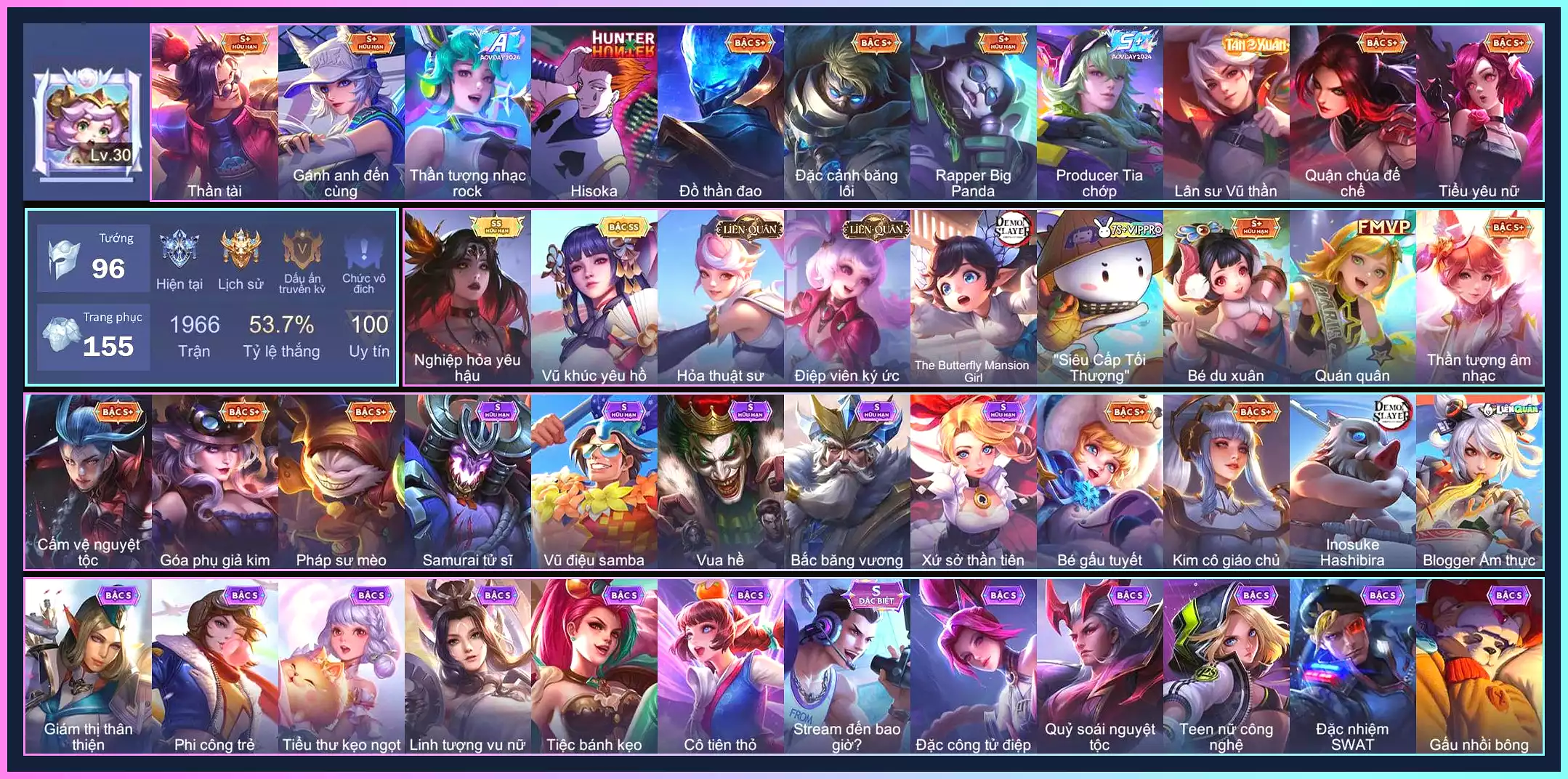 Ming|CÁC SKIN SS: TelAnnas Vũ Khúc Yêu Hồ|CÁC SKIN SSS: |CÁC SKIN ANIME: Zephys Inosuke Hashibira