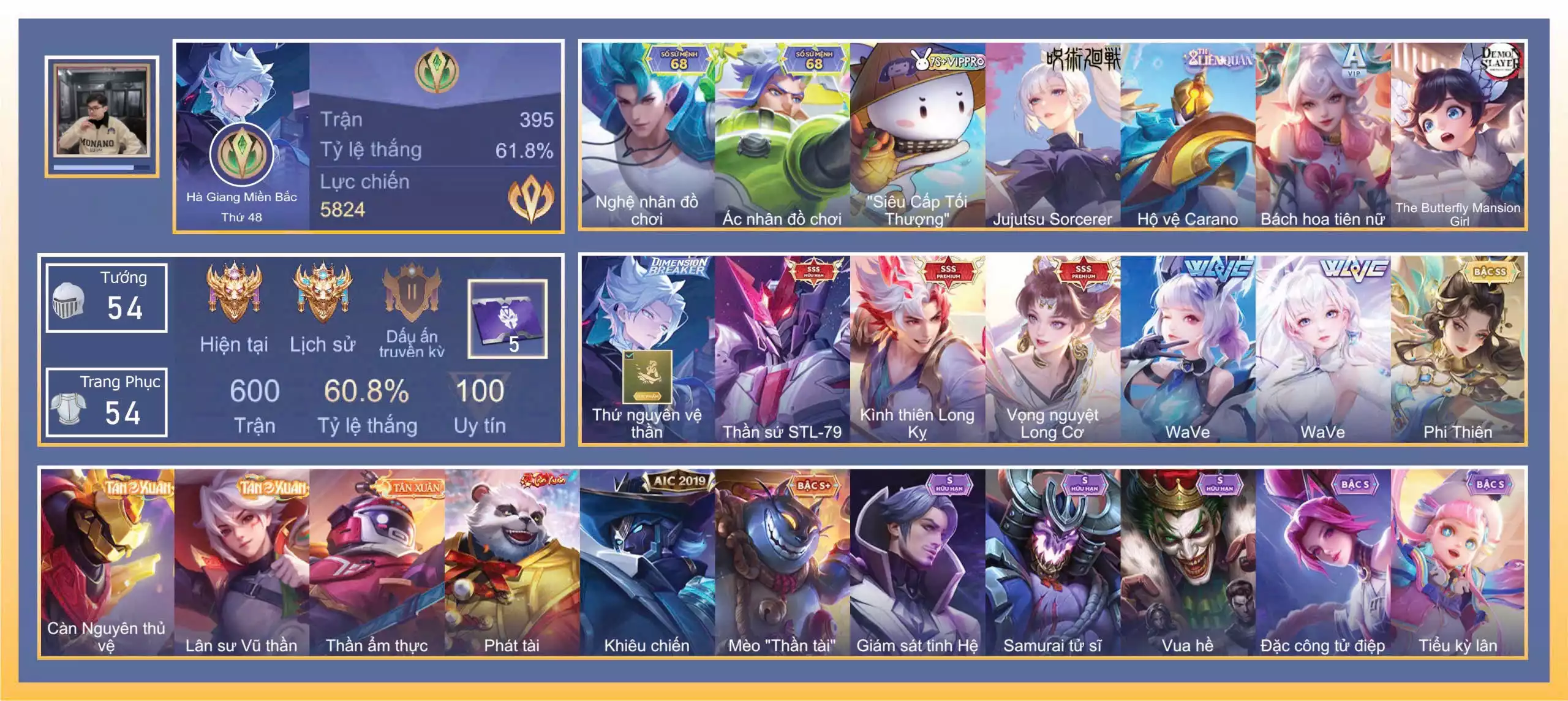 Loại acc | MUA ACC LIÊN QUÂN VIP: SKIN SSS, ANIME, CỤC VÀNG, MÁC THÁCH ĐẤU |