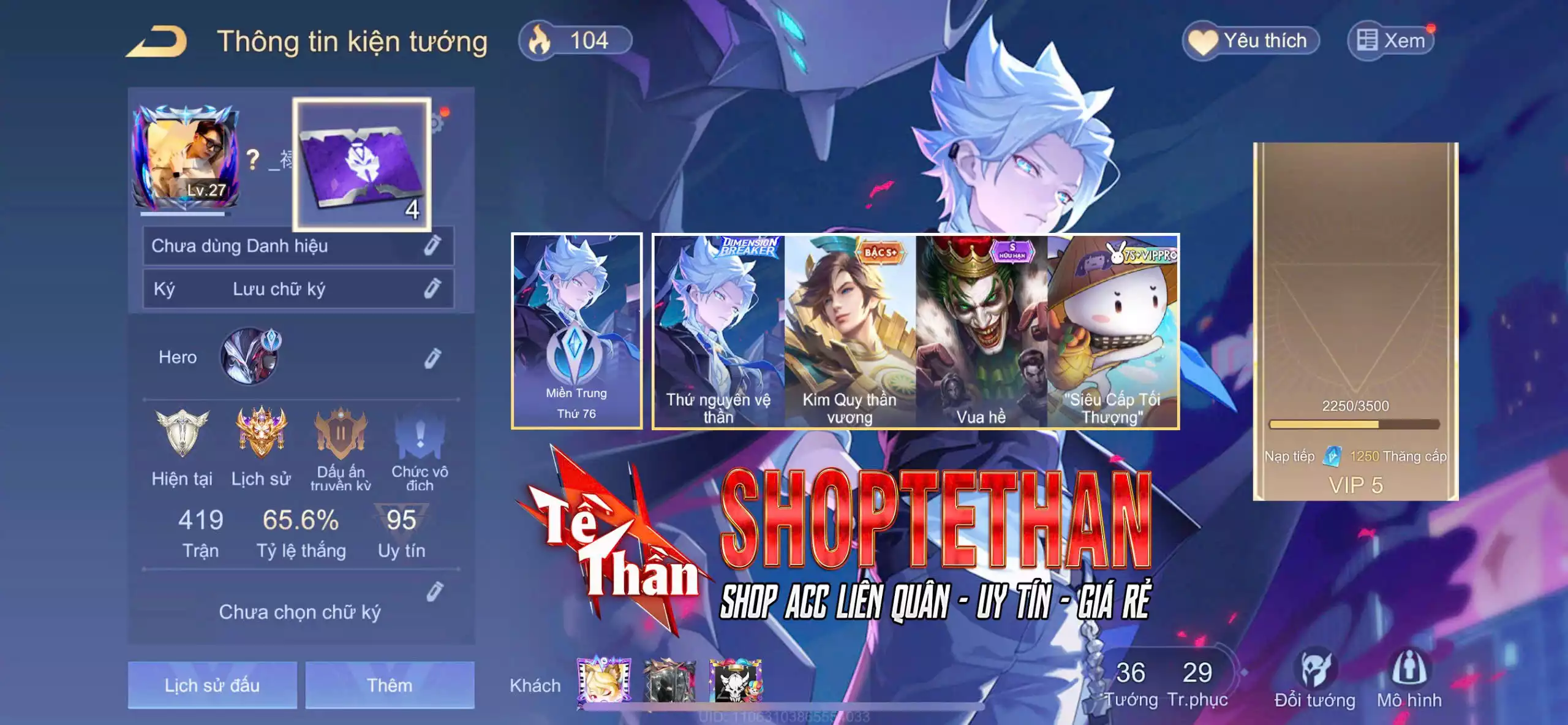Loại acc | MUA ACC LIÊN QUÂN VIP: SKIN SSS, ANIME, CỤC VÀNG, MÁC THÁCH ĐẤU |