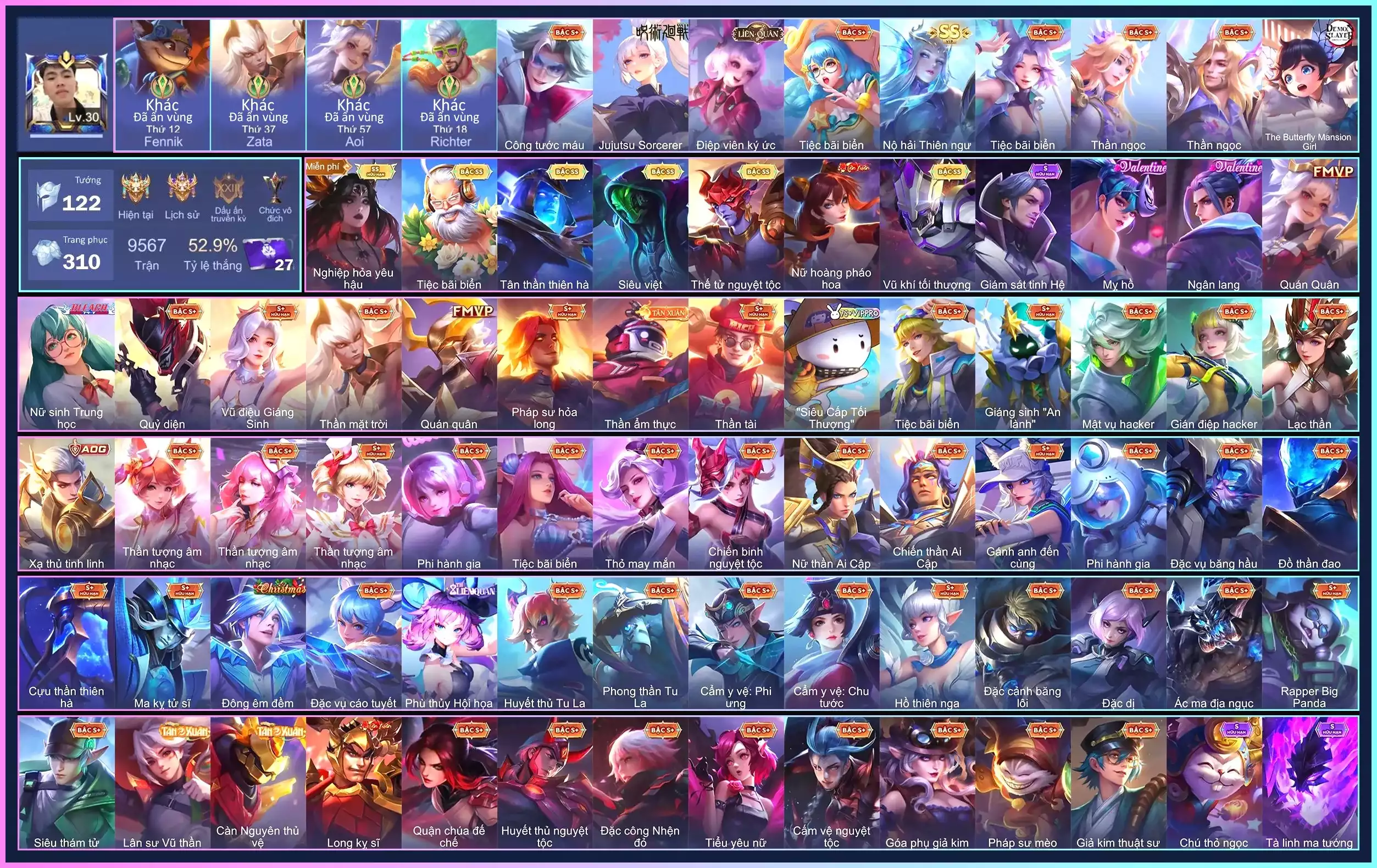 Acc #53967: Valhein Vũ khí tối thượng, Gildur Tiệc Bãi Biển, Yorn Thế Tử Nguyệt Tộc, Tulen Tân Thần Thiên Hà, Raz Siêu việt…, giá 900,000 đ