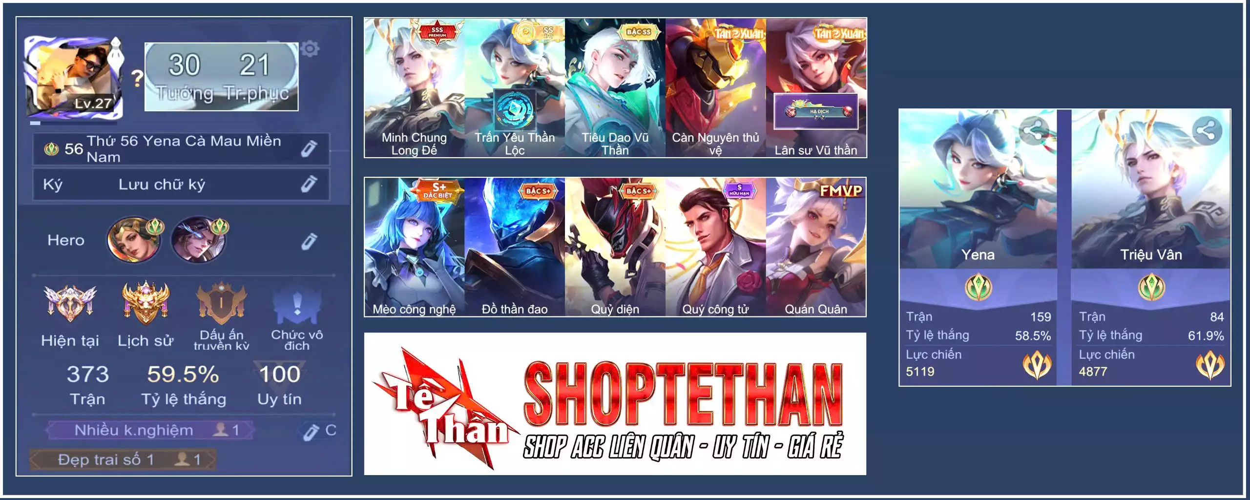 MUA ACC LIÊN QUÂN VIP: SKIN SSS, ANIME, CỤC VÀNG, MÁC THÁCH ĐẤU