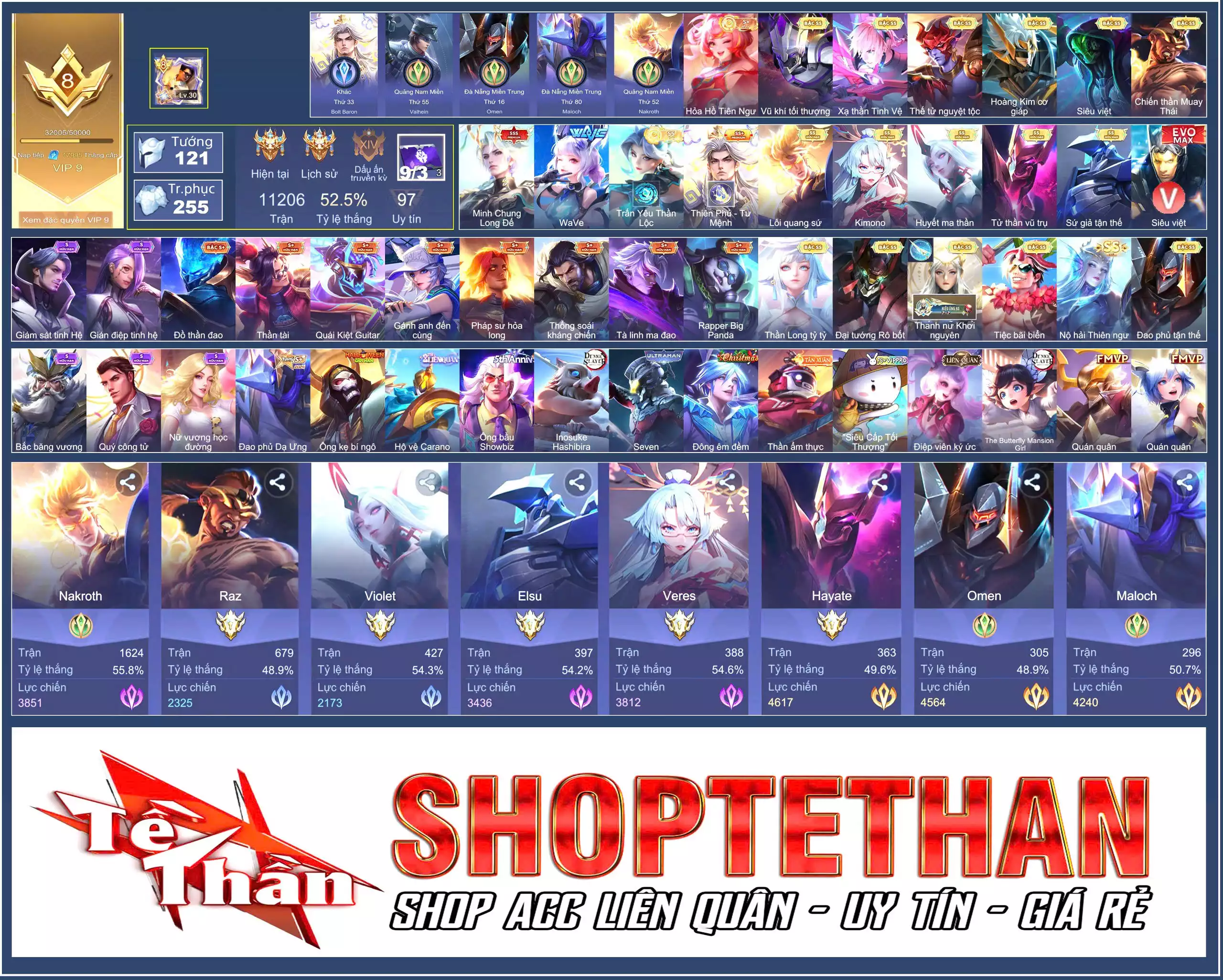 Loại acc | MUA ACC LIÊN QUÂN VIP: SKIN SSS, ANIME, CỤC VÀNG, MÁC THÁCH ĐẤU |