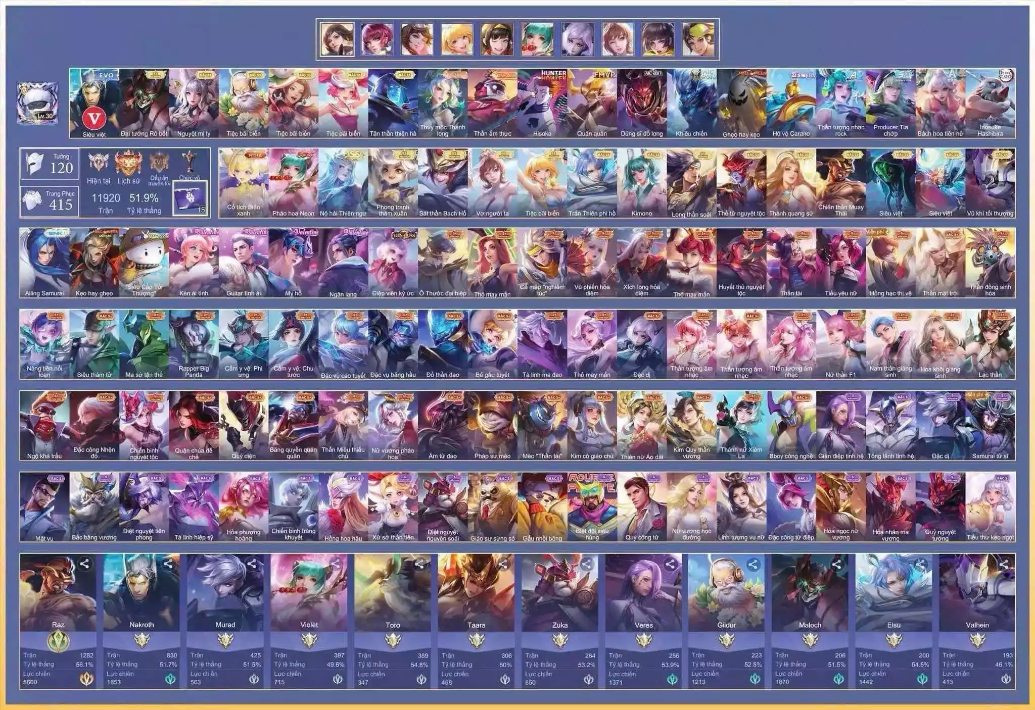 Loại acc | MUA ACC LIÊN QUÂN VIP: SKIN SSS, ANIME, CỤC VÀNG, MÁC THÁCH ĐẤU |