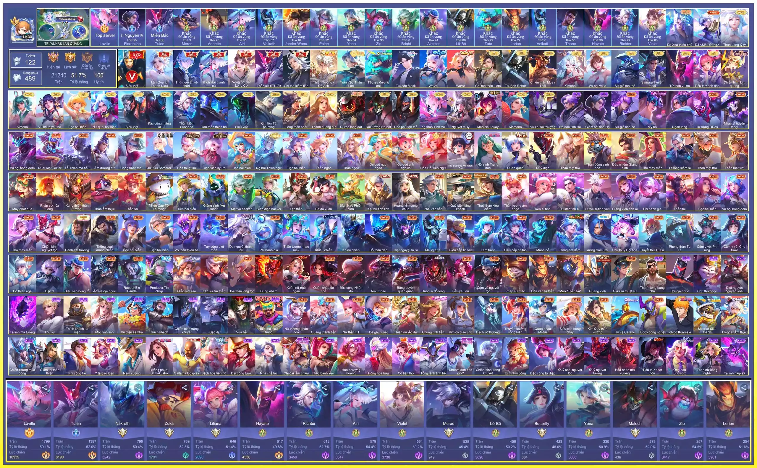 Loại acc | MUA ACC LIÊN QUÂN VIP: SKIN SSS, ANIME, CỤC VÀNG, MÁC THÁCH ĐẤU |