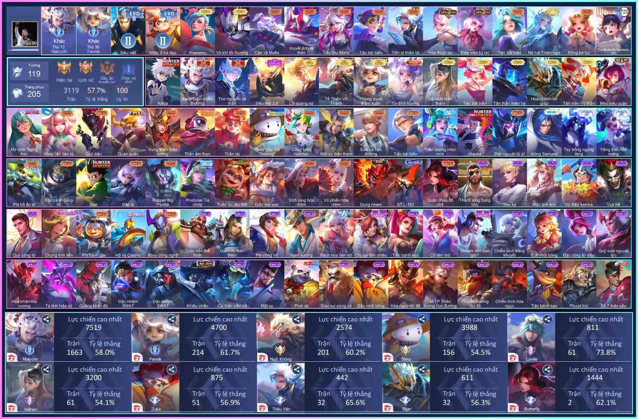 Loại acc | MUA ACC LIÊN QUÂN VIP: SKIN SSS, ANIME, CỤC VÀNG, MÁC THÁCH ĐẤU |