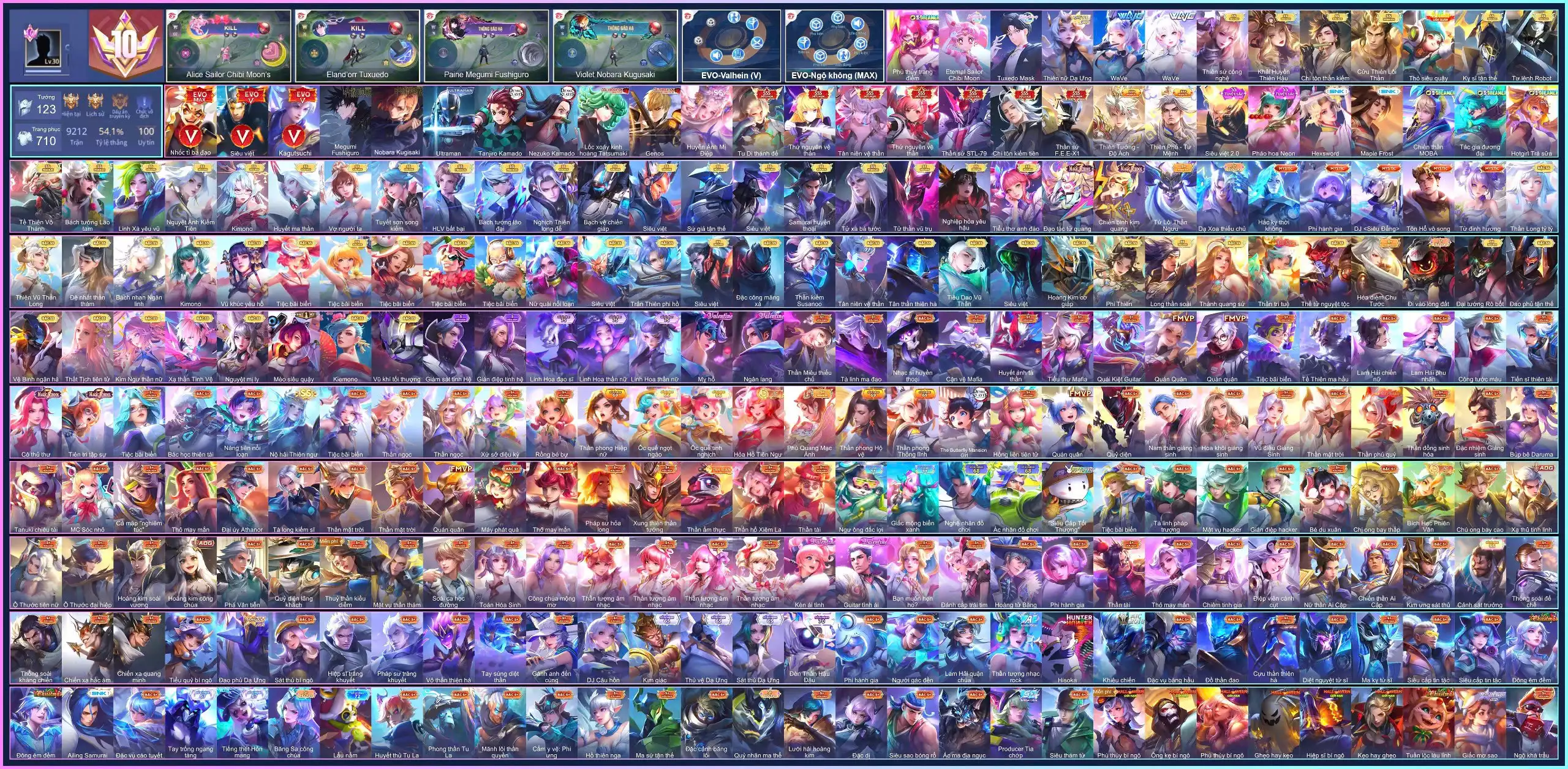 Loại acc | MUA ACC LIÊN QUÂN VIP: SKIN SSS, ANIME, CỤC VÀNG, MÁC THÁCH ĐẤU |
