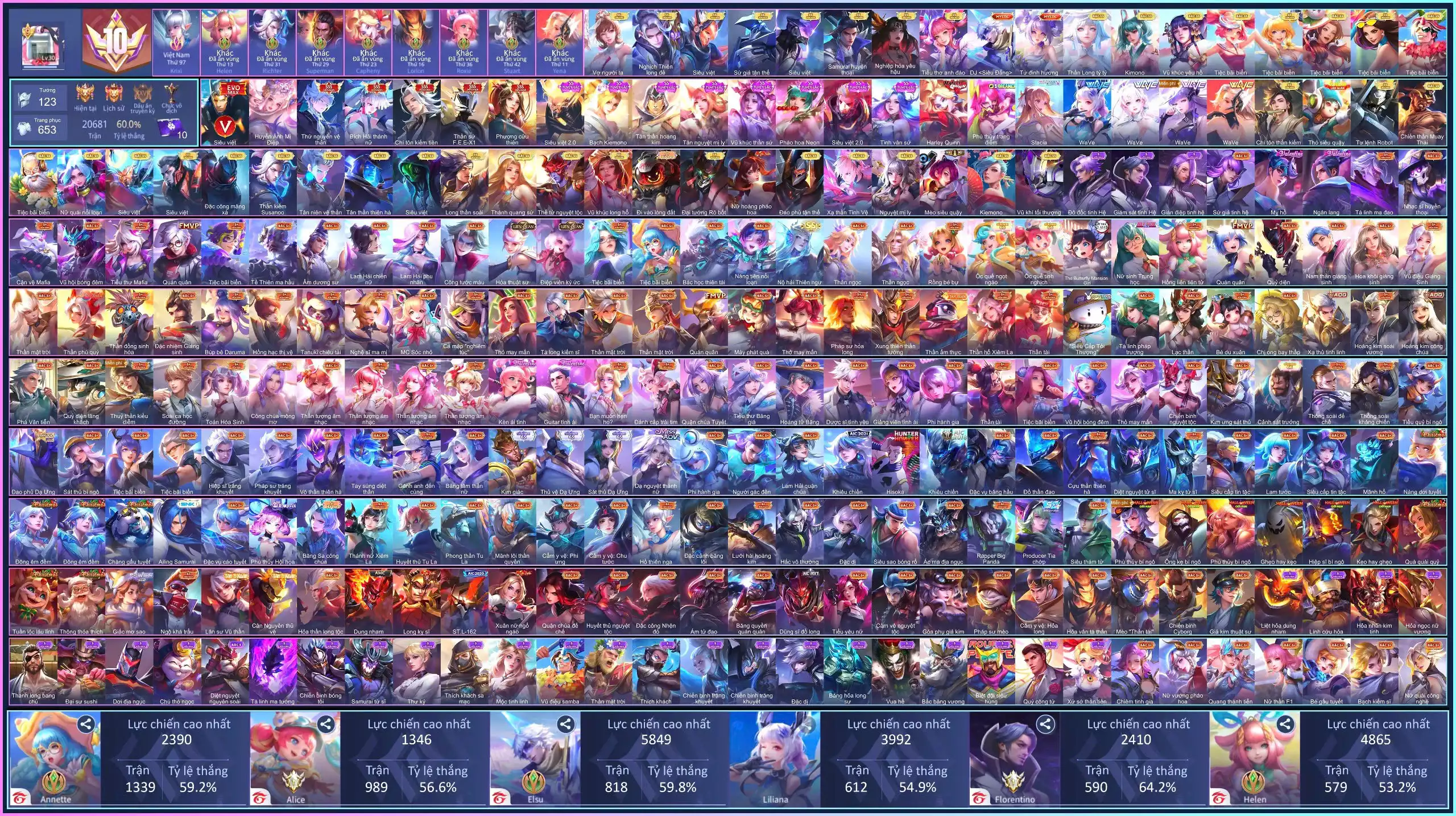 Acc #57478: (VIP 10) MÁC THÁCH ĐẤU, 6 SSS, nhiều skin ss và sshh..., giá 13,000,000 đ