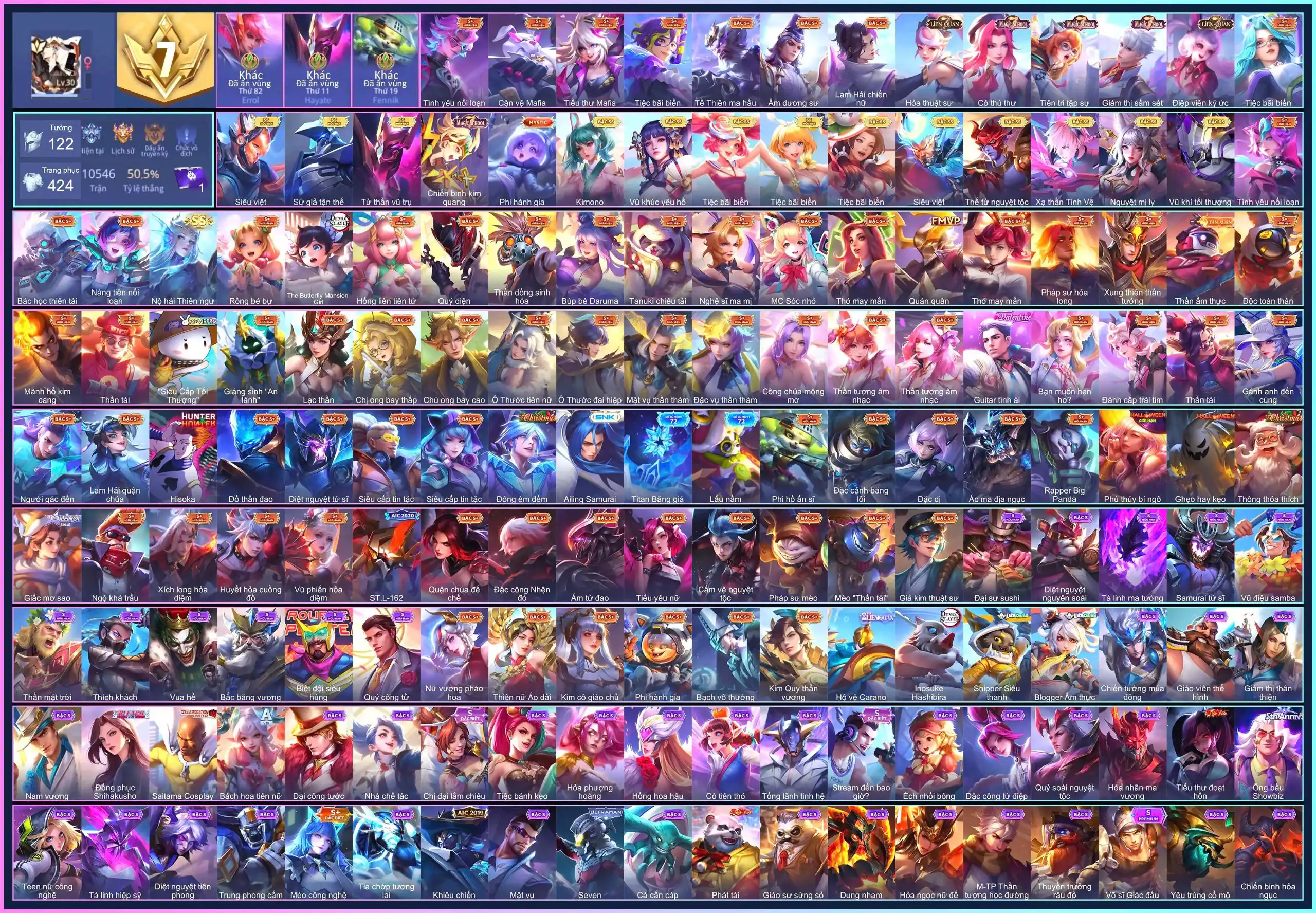 Valhein Vũ khí tối thượng, Krixi Tiệc Bãi Biển, Điêu Thuyền Tiệc bãi biển, Violet Tiệc bãi biển, Yorn Thế Tử Nguyệt Tộc, TelAnnas Vũ khúc yêu hồ, Arthur Siêu Việt, Ngộ Không Siêu việt, Liliana Nguyệt mị ly, Elsu Sứ giả tận thế, Hayate Tử thần vũ trụ, Capheny Kimono, Laville Xạ Thần Tinh Vệ...MỖI SĐT