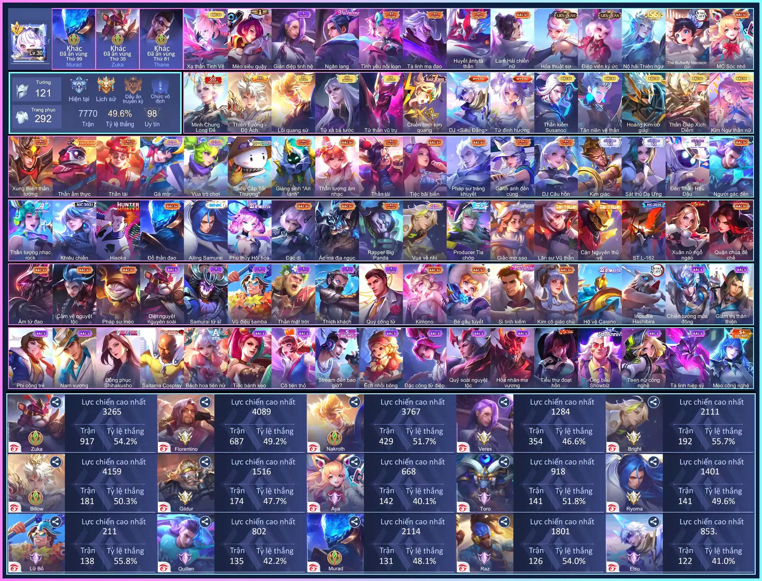 Loại acc | MUA ACC LIÊN QUÂN VIP: SKIN SSS, ANIME, CỤC VÀNG, MÁC THÁCH ĐẤU |