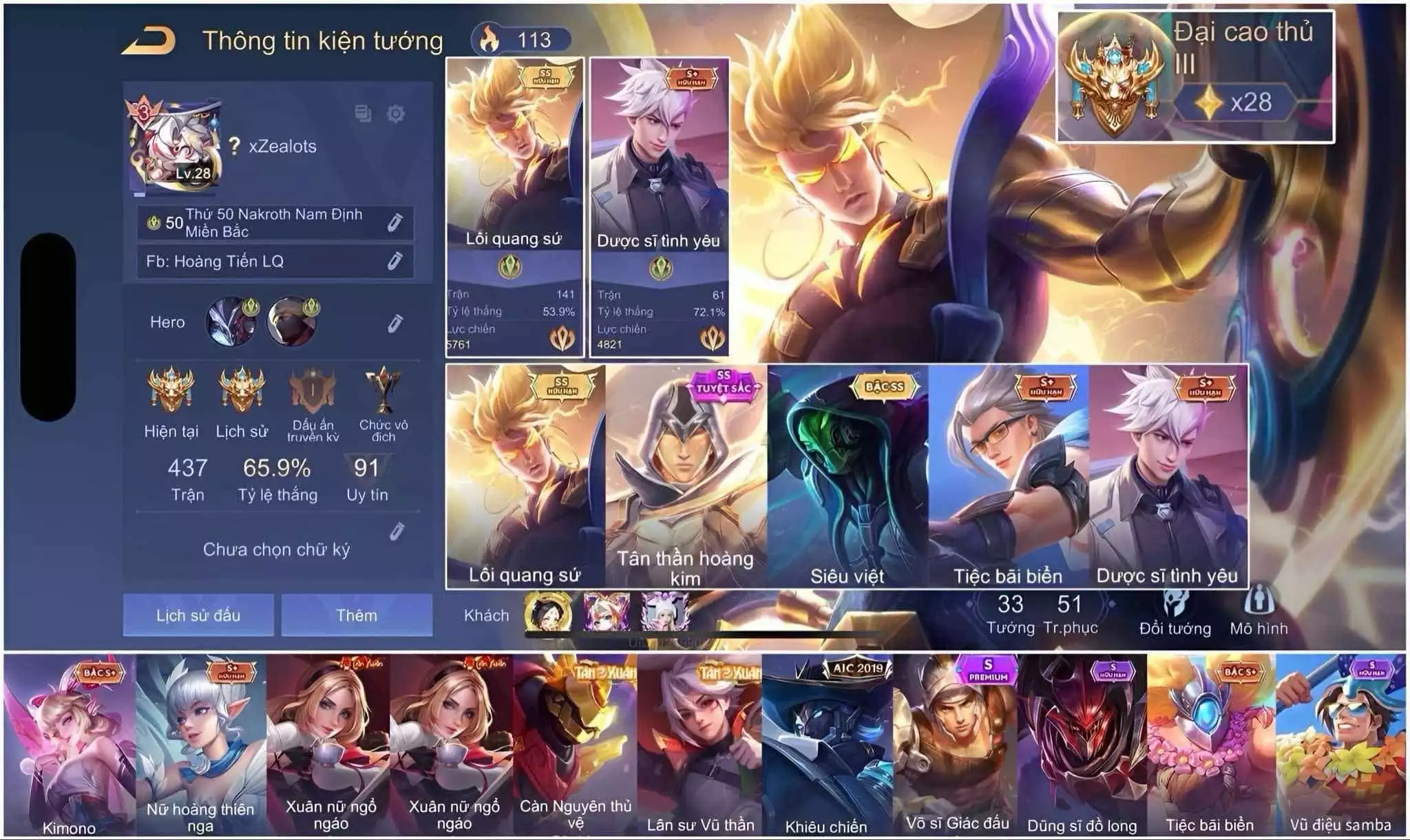 Acc #58612: Nak Lôi, Tulen Tân Thần, Raz Siêu Việt,.., giá 800,000 đ