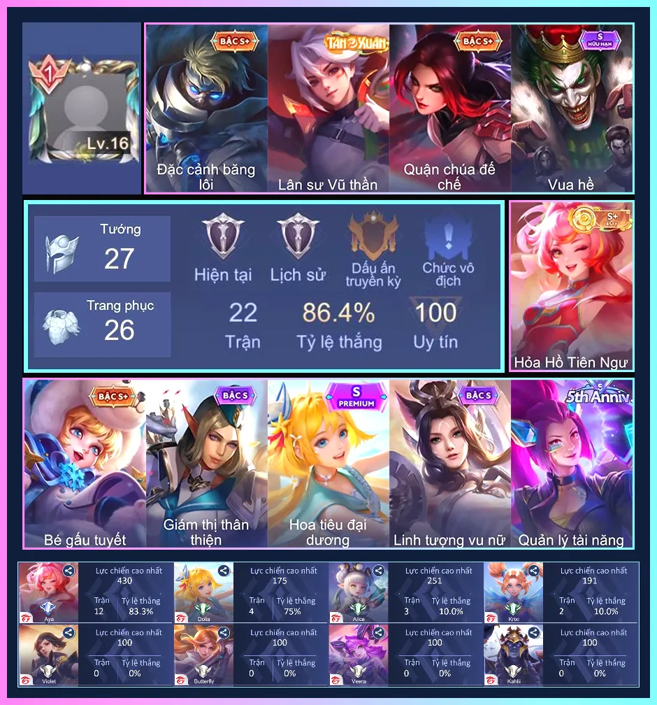 Loại acc MUA ACC LIÊN QUÂN GIÁ RẺ, NHIỀU SKIN S+, SS, SSHH. TỰ ĐỘNG | AN TOÀN | BẢO MẬT | UY TÍN