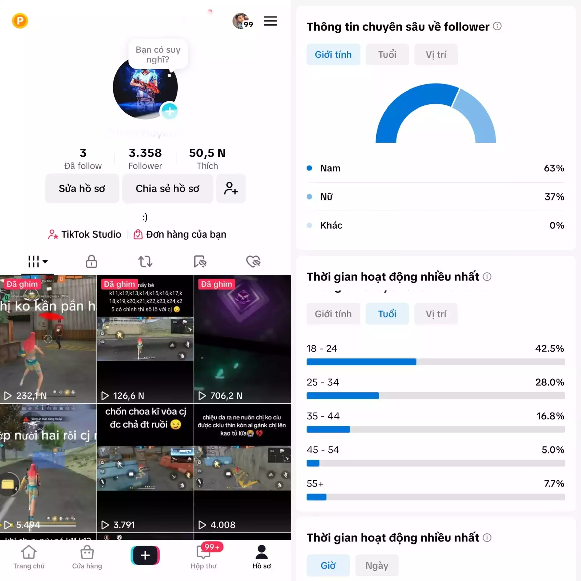 Acc #59186: Tệp Follow đa số 18 - 24 tuổi phù hợp chuyển đổi GAME - 3 hệ thống live : live thường, live màn hình, studio game., giá 599,000 đ