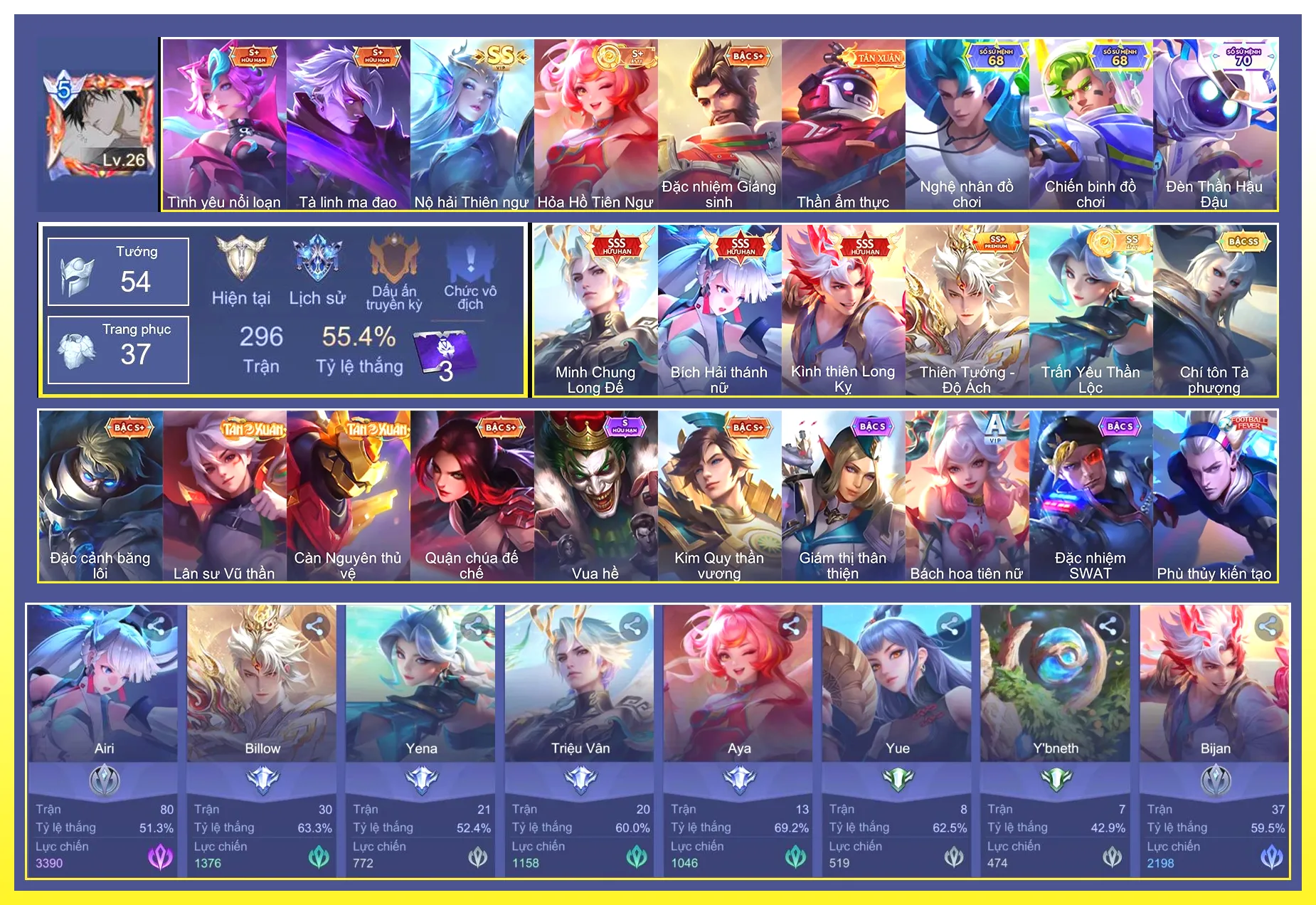 Loại acc | MUA ACC LIÊN QUÂN VIP: SKIN SSS, ANIME, CỤC VÀNG, MÁC THÁCH ĐẤU |