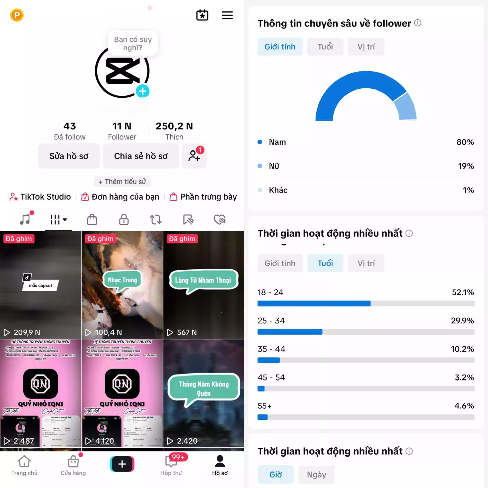 Acc #60055: Chủ đề : CapCut - Follow VN - Có Live Studio, Tiktok Shop - An toàn, Bao đổi thông tin chính chủ., giá 1,299,000 đ