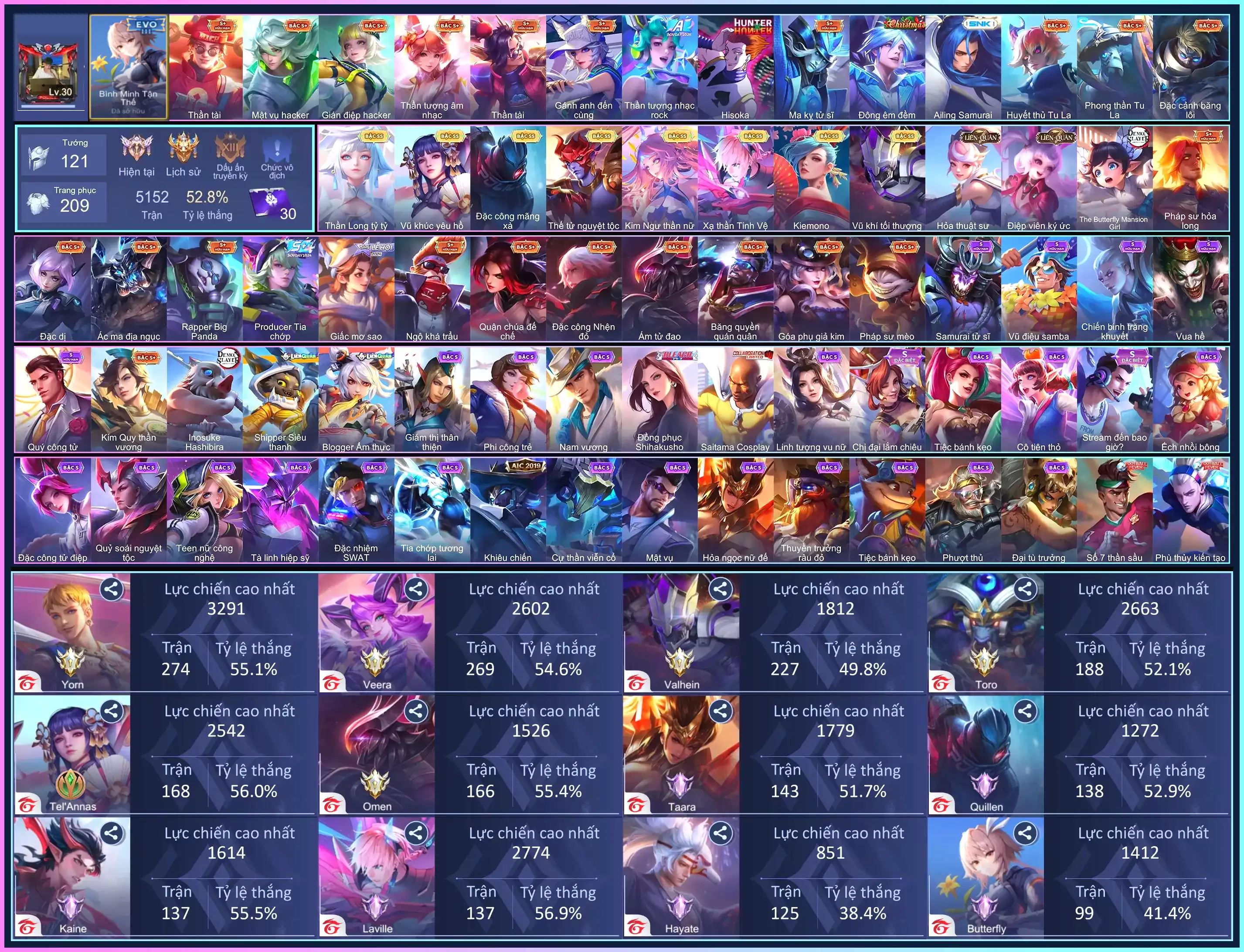 Acc #60379: Violet Tỷ Tỷ, Tell Yêu Hồ, Butterfly Kim Ngư, Lavi Tinh Hệ,.., giá 888,888 đ