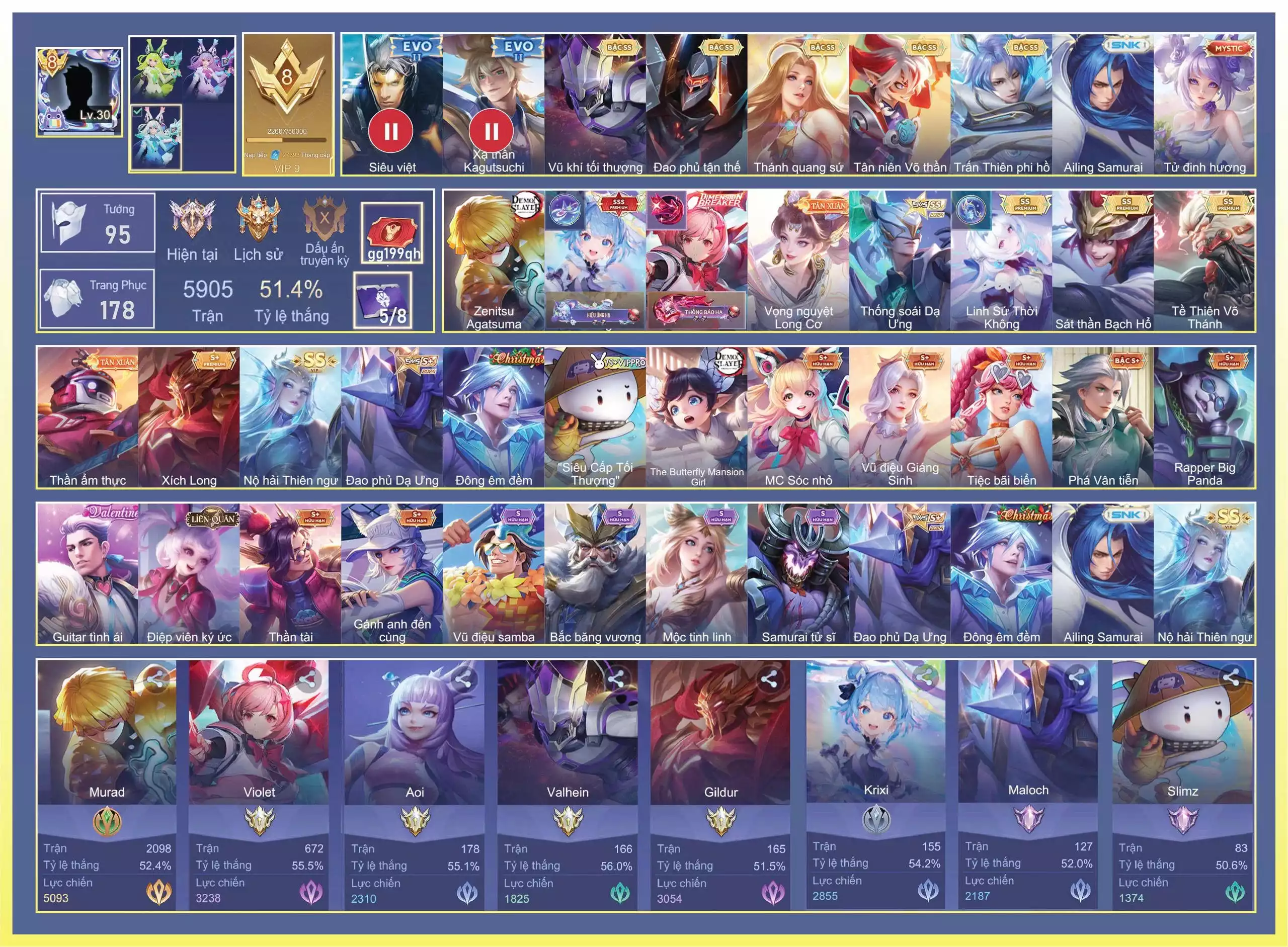 Loại acc | MUA ACC LIÊN QUÂN VIP: SKIN SSS, ANIME, CỤC VÀNG, MÁC THÁCH ĐẤU |