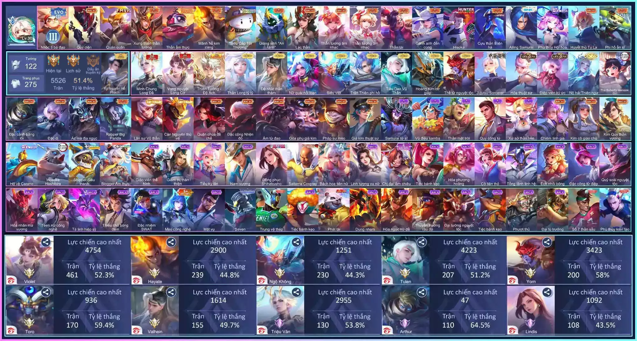 Loại acc | MUA ACC LIÊN QUÂN VIP: SKIN SSS, ANIME, CỤC VÀNG, MÁC THÁCH ĐẤU |