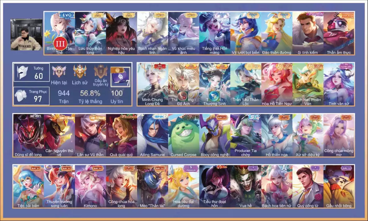 Loại acc | MUA ACC LIÊN QUÂN VIP: SKIN SSS, ANIME, CỤC VÀNG, MÁC THÁCH ĐẤU |