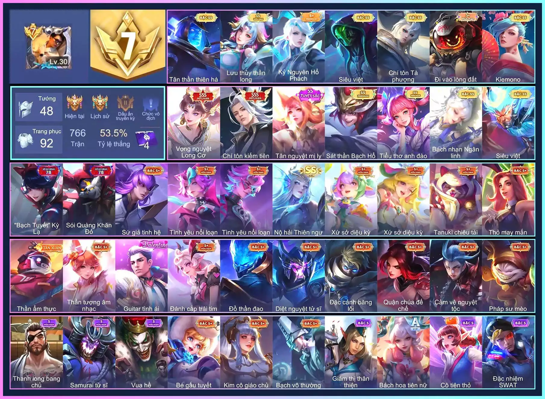 Loại acc | MUA ACC LIÊN QUÂN VIP: SKIN SSS, ANIME, CỤC VÀNG, MÁC THÁCH ĐẤU |