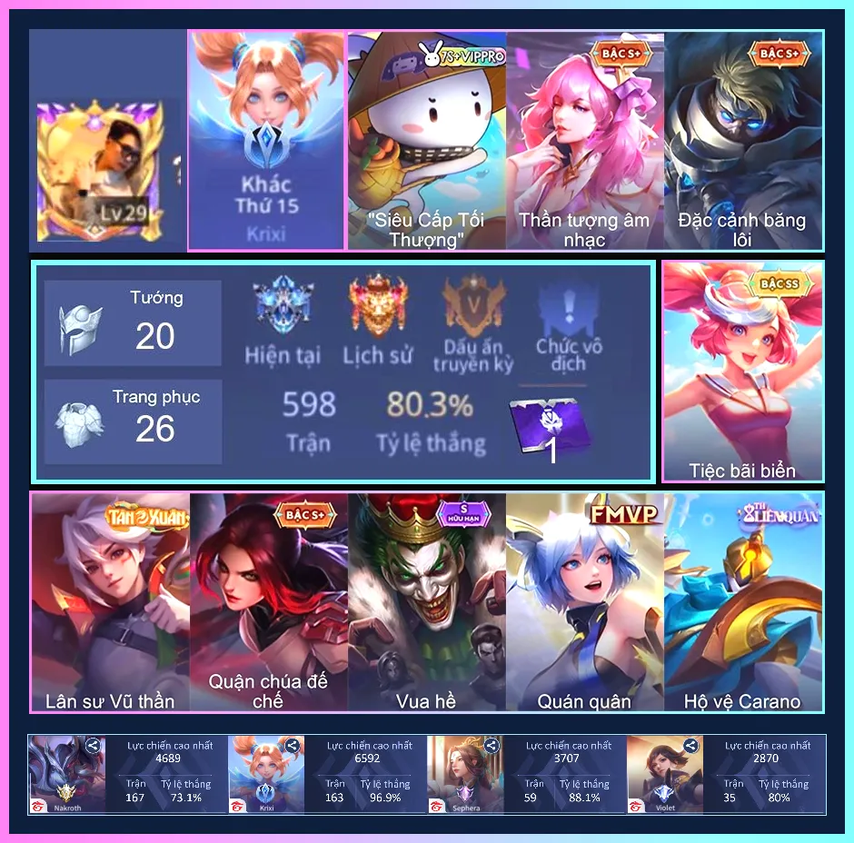 Loại acc | MUA ACC LIÊN QUÂN VIP: SKIN SSS, ANIME, CỤC VÀNG, MÁC THÁCH ĐẤU |