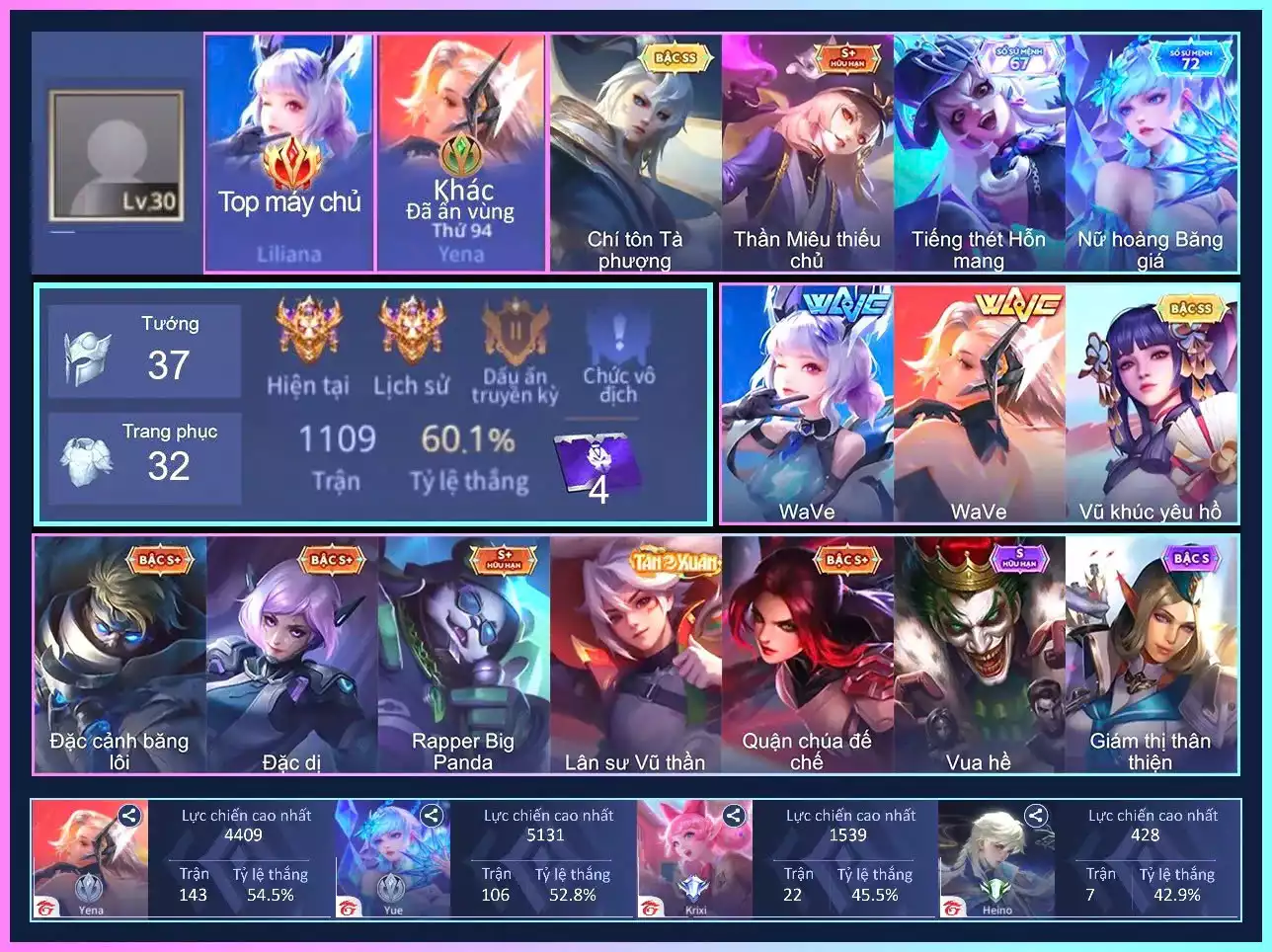 Loại acc | MUA ACC LIÊN QUÂN VIP: SKIN SSS, ANIME, CỤC VÀNG, MÁC THÁCH ĐẤU |