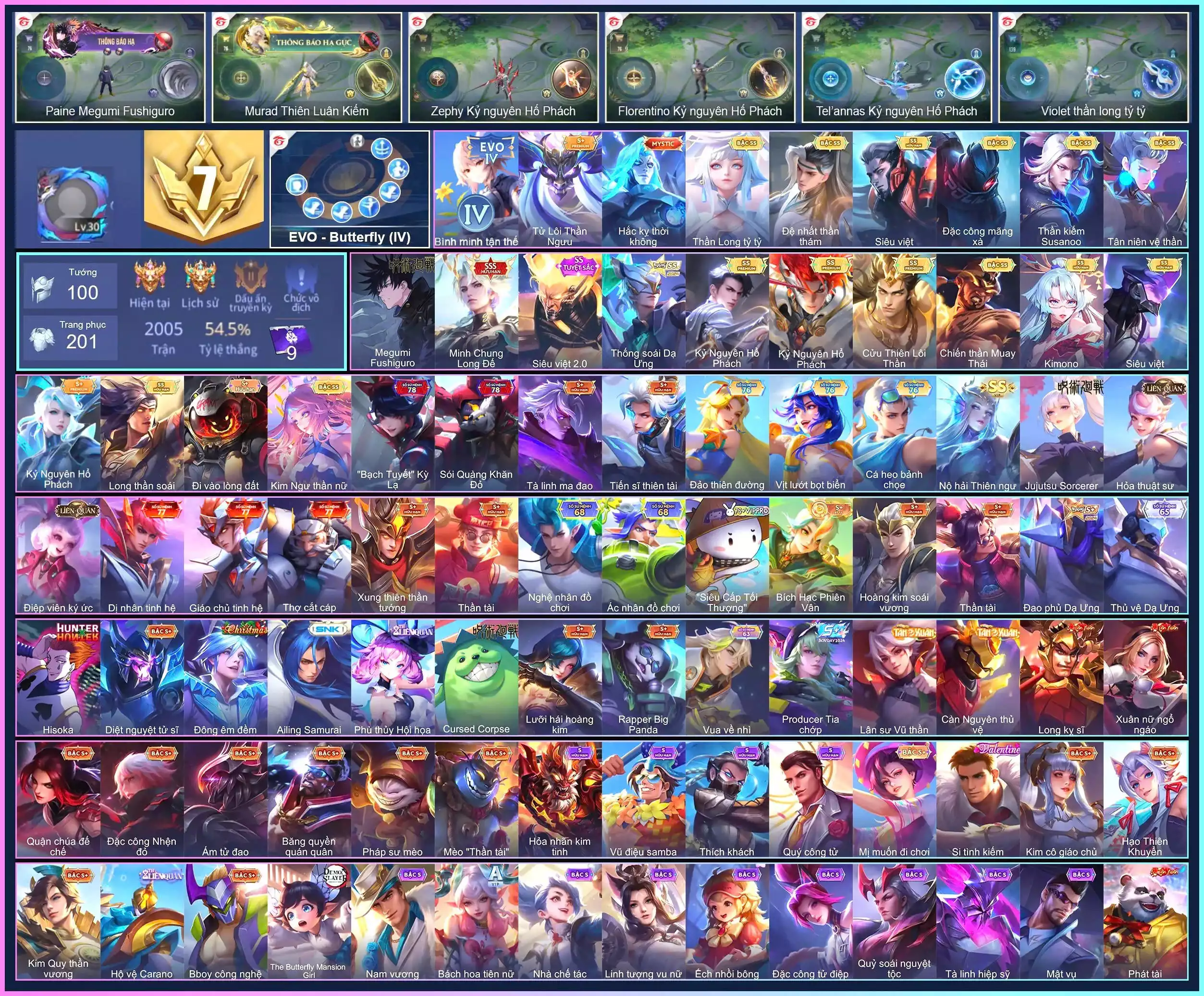 Loại acc | MUA ACC LIÊN QUÂN VIP: SKIN SSS, ANIME, CỤC VÀNG, MÁC THÁCH ĐẤU |