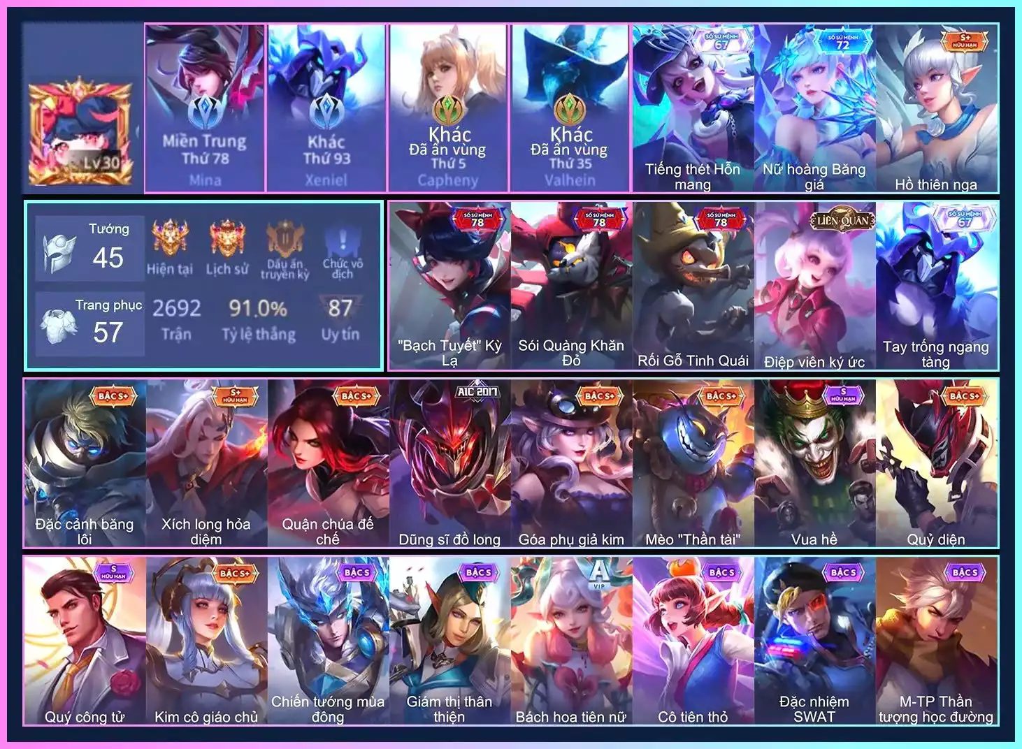 Loại acc | MUA ACC LIÊN QUÂN VIP: SKIN SSS, ANIME, CỤC VÀNG, MÁC THÁCH ĐẤU |