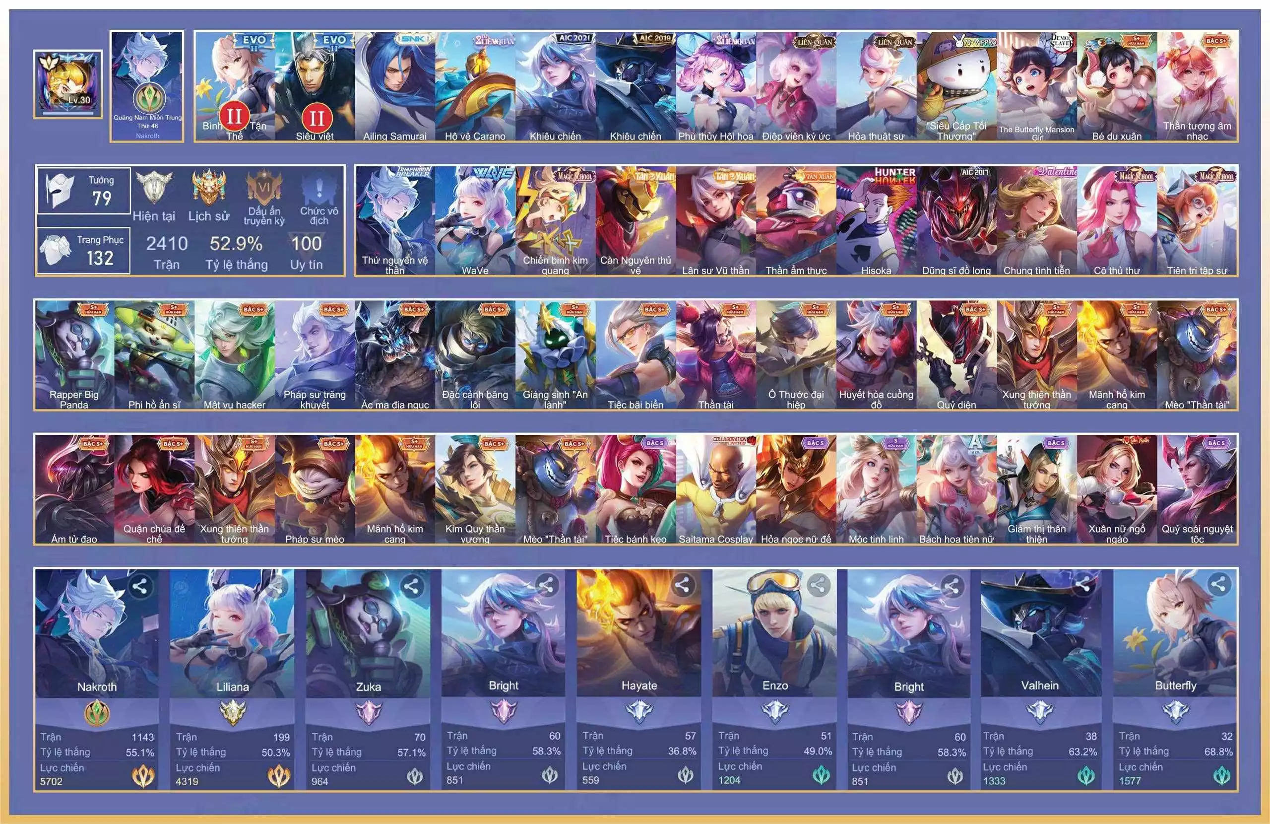 Loại acc | MUA ACC LIÊN QUÂN VIP: SKIN SSS, ANIME, CỤC VÀNG, MÁC THÁCH ĐẤU |