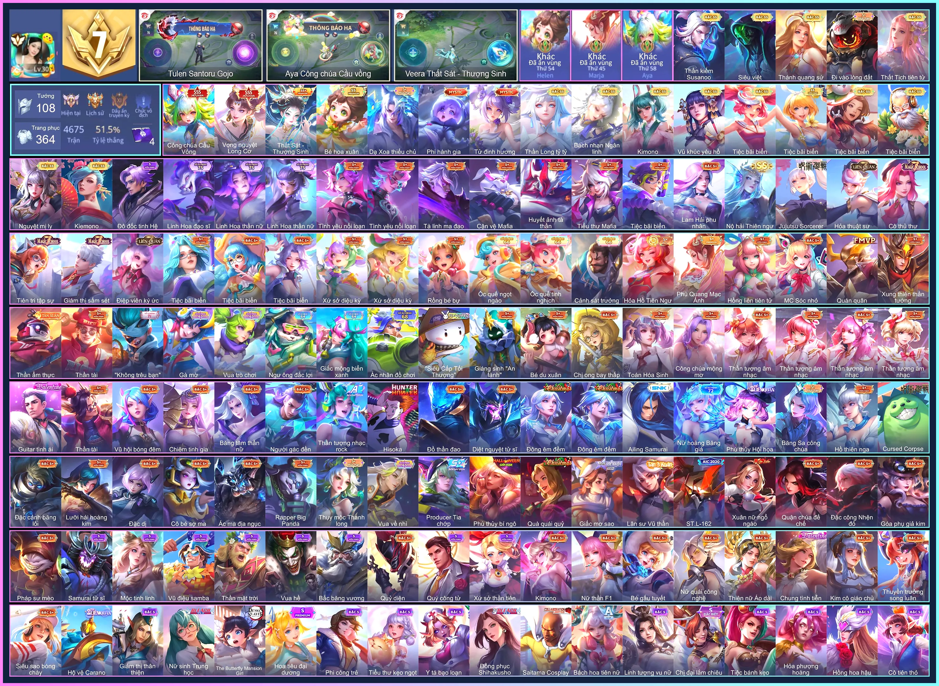 Acc #63187: Violet Vọng nguyệt Long Cơ, Aya Công chúa cầu vồng, Veera Thất Sát - Thượng Sinh..., giá 3,800,000 đ