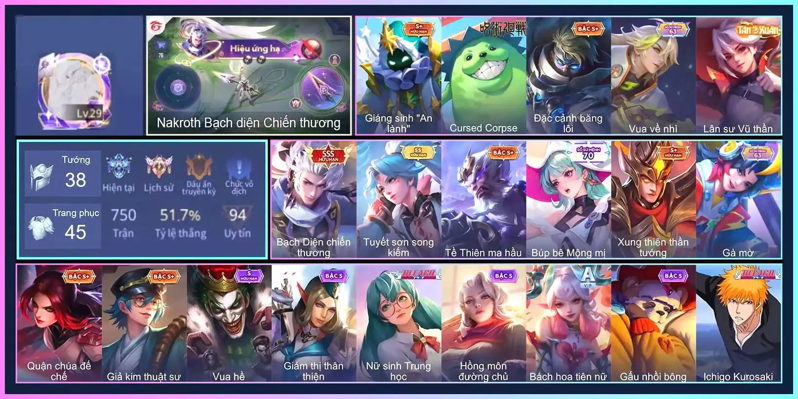 Loại acc | MUA ACC LIÊN QUÂN VIP: SKIN SSS, ANIME, CỤC VÀNG, MÁC THÁCH ĐẤU |