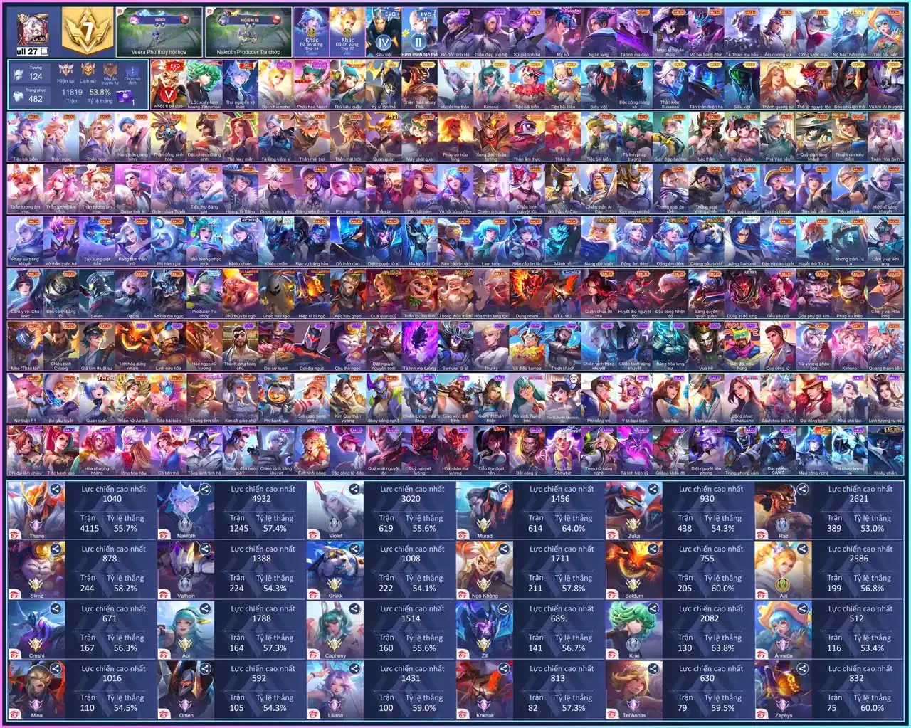Acc #63522: Full 28 Ấn : Nakroth Vệ Thần, Kixi Tatsumaki, Ngộ Không EVO V, Raz Thái, Triệu Vân Kỵ Sĩ, Airi Bạch Keimono,.. dàn ss xịn, giá 5,200,000 đ
