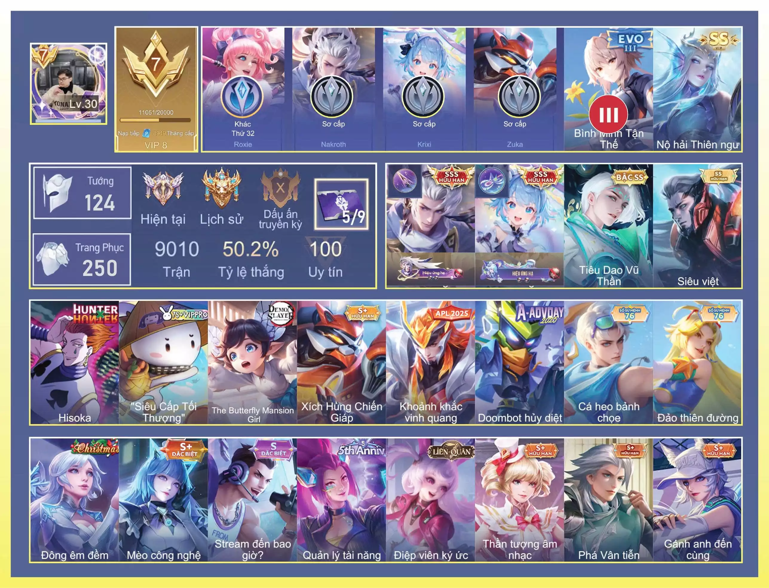 Loại acc | MUA ACC LIÊN QUÂN VIP: SKIN SSS, ANIME, CỤC VÀNG, MÁC THÁCH ĐẤU |