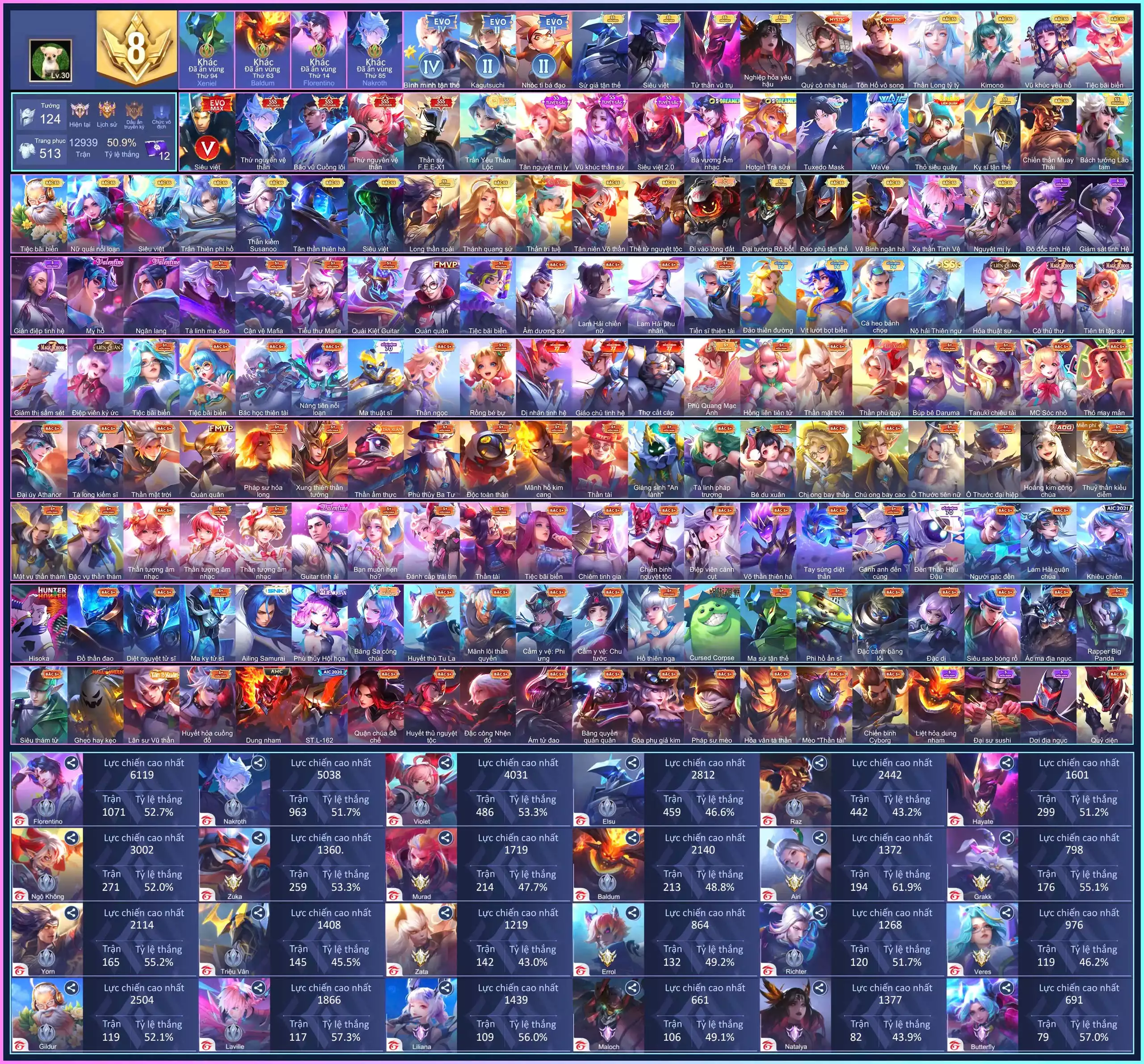 Loại acc | MUA ACC LIÊN QUÂN VIP: SKIN SSS, ANIME, CỤC VÀNG, MÁC THÁCH ĐẤU |