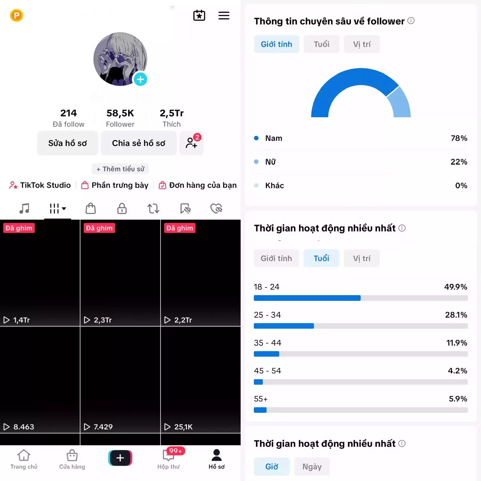 Acc #63730: Chủ đề : Nhạc - Follow VN - Có Live Studio, Tiktok Shop - An toàn, Bao đổi thông tin chính chủ., giá 4,099,000 đ