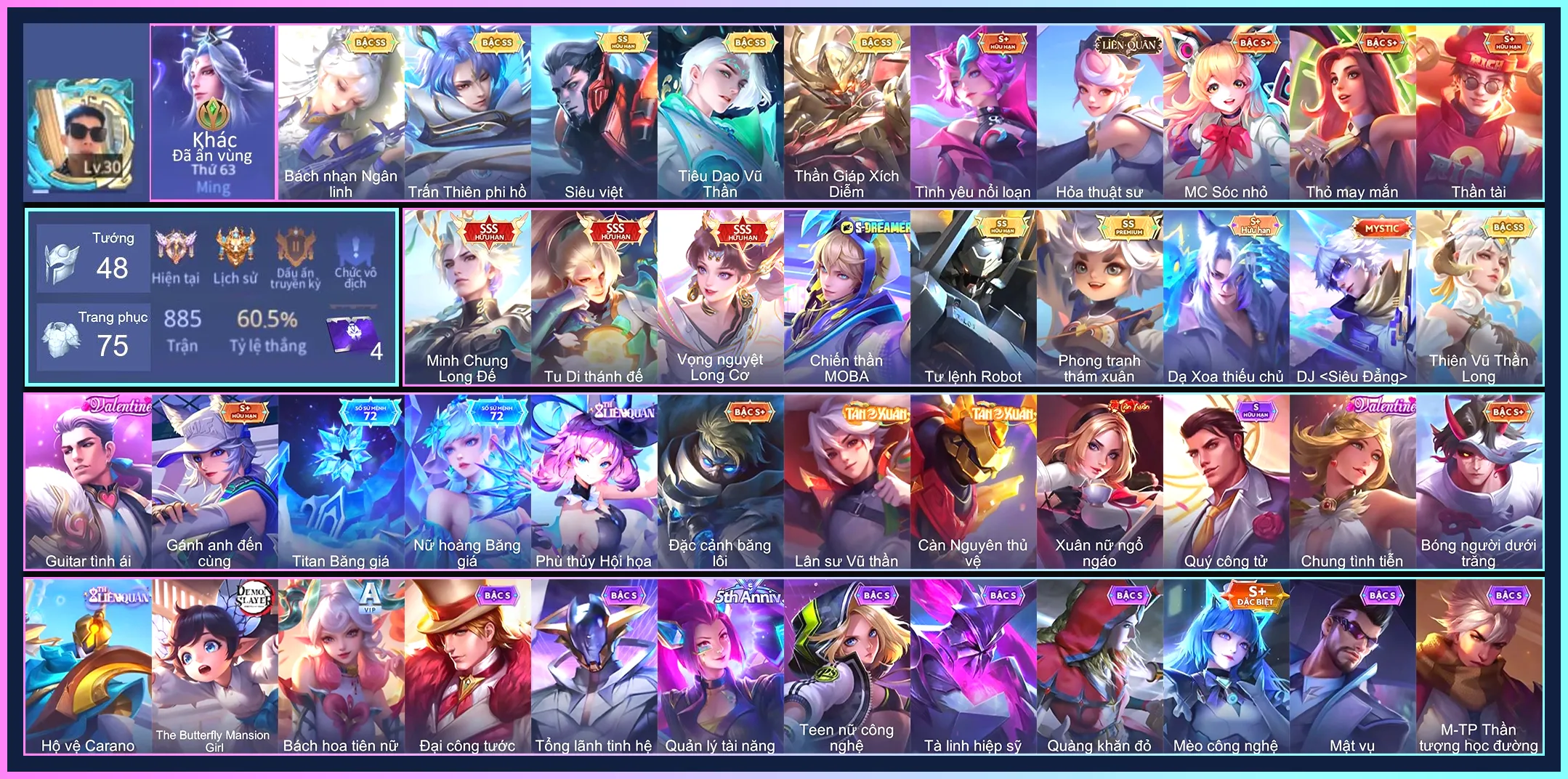 Loại acc | MUA ACC LIÊN QUÂN VIP: SKIN SSS, ANIME, CỤC VÀNG, MÁC THÁCH ĐẤU |