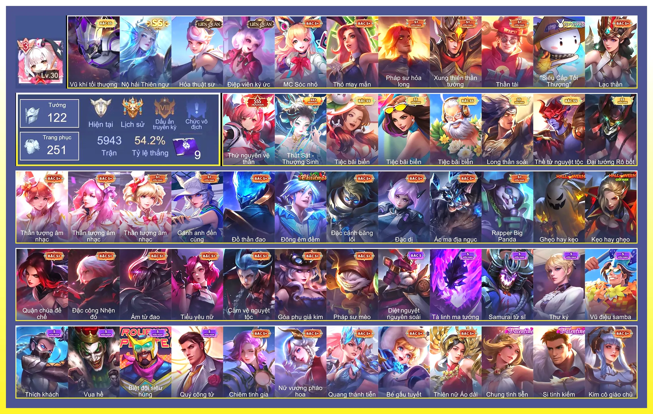 Loại acc | MUA ACC LIÊN QUÂN VIP: SKIN SSS, ANIME, CỤC VÀNG, MÁC THÁCH ĐẤU |