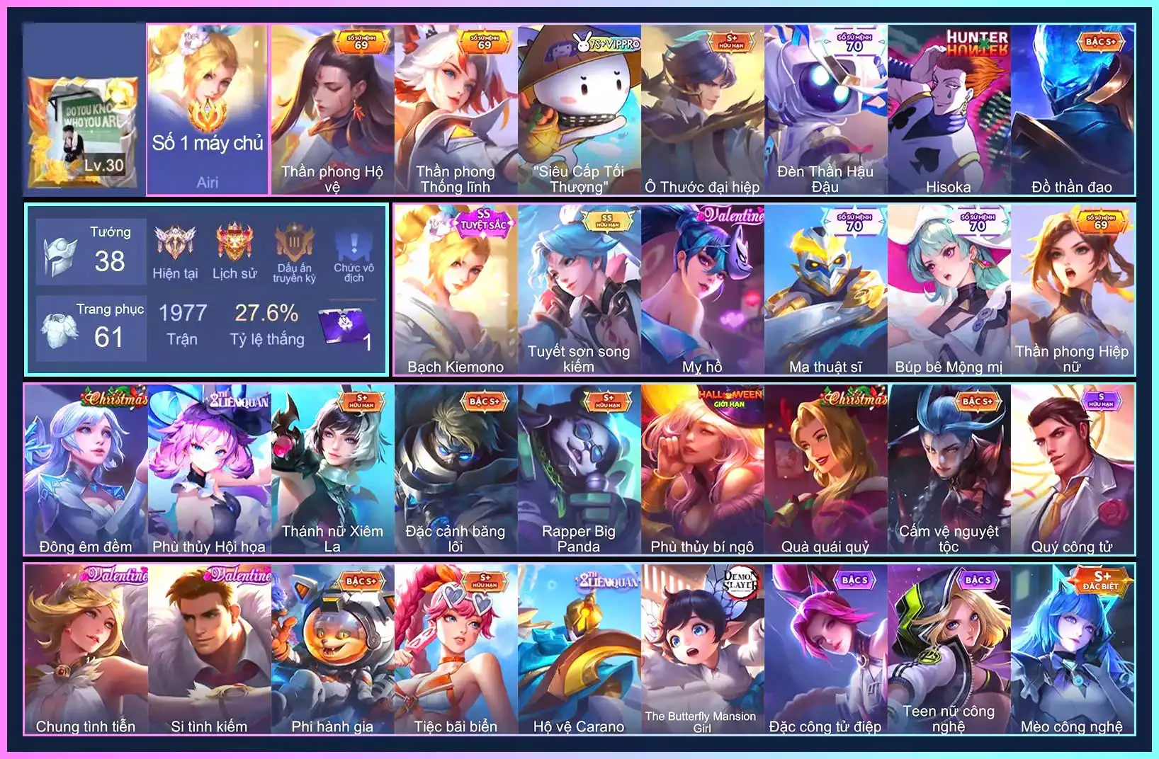 Loại acc | MUA ACC LIÊN QUÂN VIP: SKIN SSS, ANIME, CỤC VÀNG, MÁC THÁCH ĐẤU |