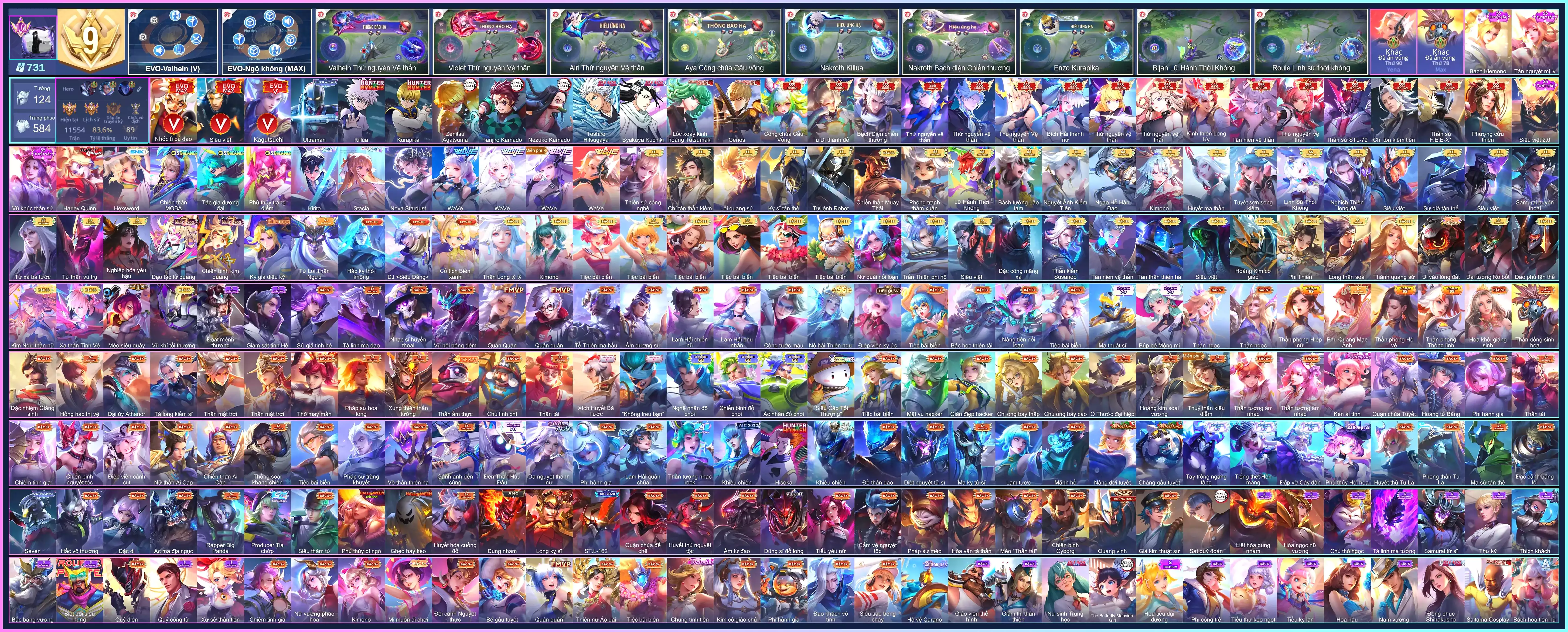 Acc #64242: (VIP 9) 16 SSS, Errol Genos, Enzo Kurapika, Allain Kirito, Bright Toshiro Hitsugaya, Yan Tanjiro Kamado, Murad Byakuya Kuchiki, Murad Zenitsu Agatsuma, Krixi Lốc Xoáy Kinh Hoàng, Nakroth Killua, Butterfly Stacia... DƯ 2700 QUÂN HUY, giá 27,000,000 đ