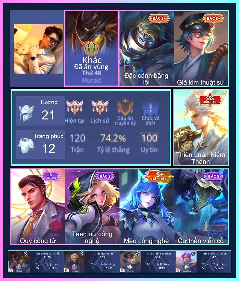 Loại acc | MUA ACC LIÊN QUÂN VIP: SKIN SSS, ANIME, CỤC VÀNG, MÁC THÁCH ĐẤU |