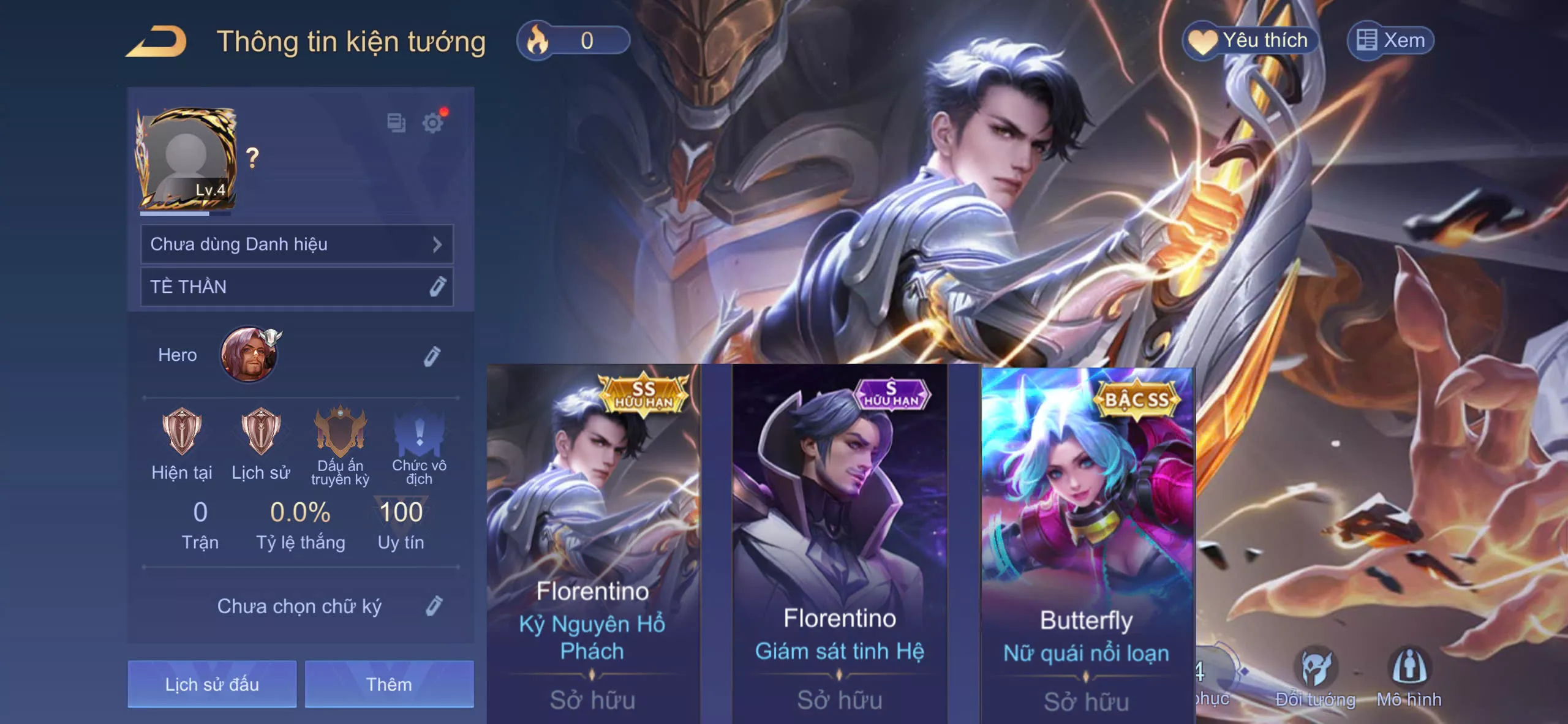 Acc #65591: ACC REG: Butterfly Nữ Quái Nổi Loạn, Florentino Giám sát tinh hệ, Florentino Kỷ Nguyên Hổ Phách… TRẮNG THÔNG TIN, giá 399,000 đ