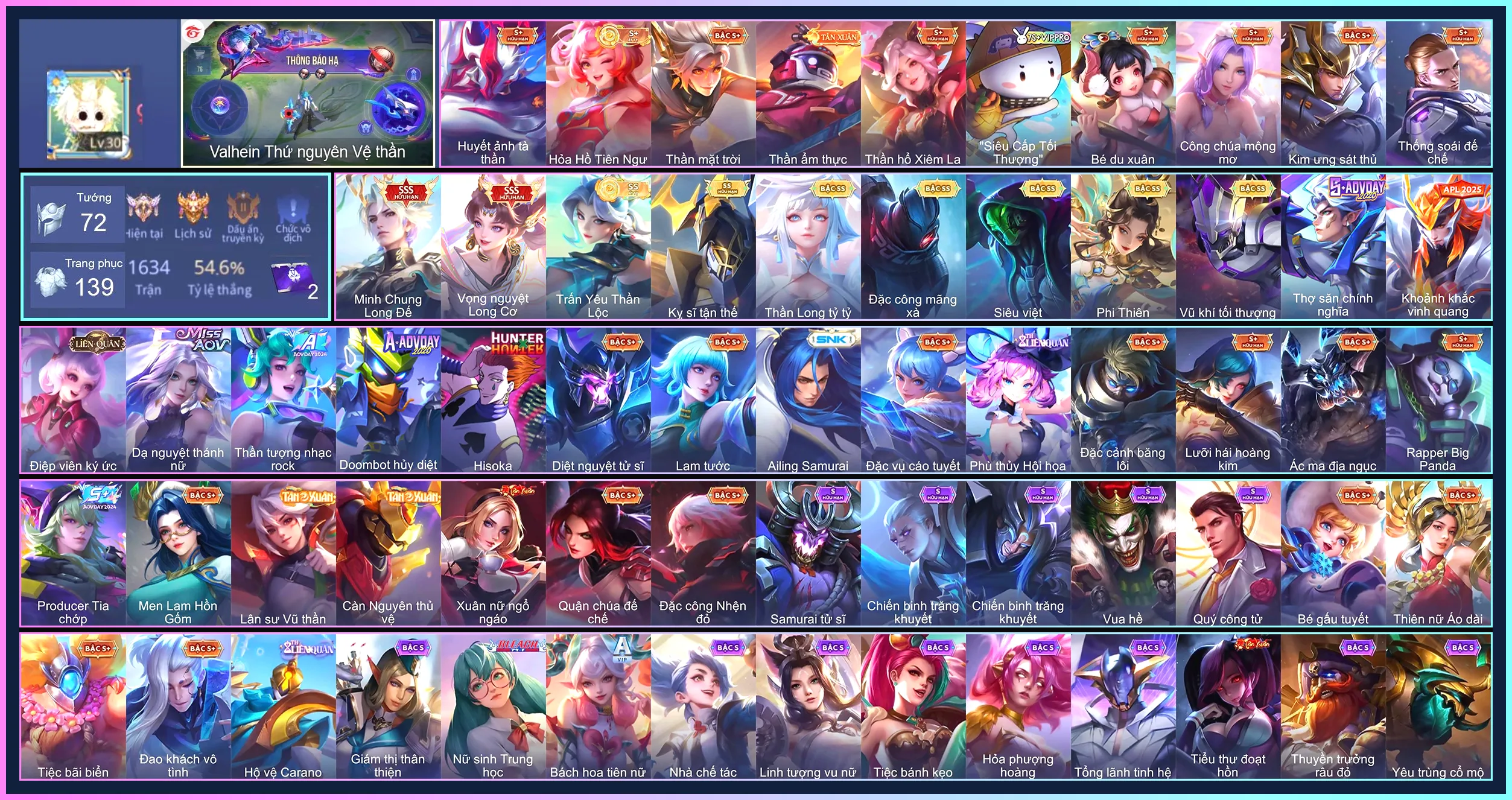 Loại acc | MUA ACC LIÊN QUÂN VIP: SKIN SSS, ANIME, CỤC VÀNG, MÁC THÁCH ĐẤU |