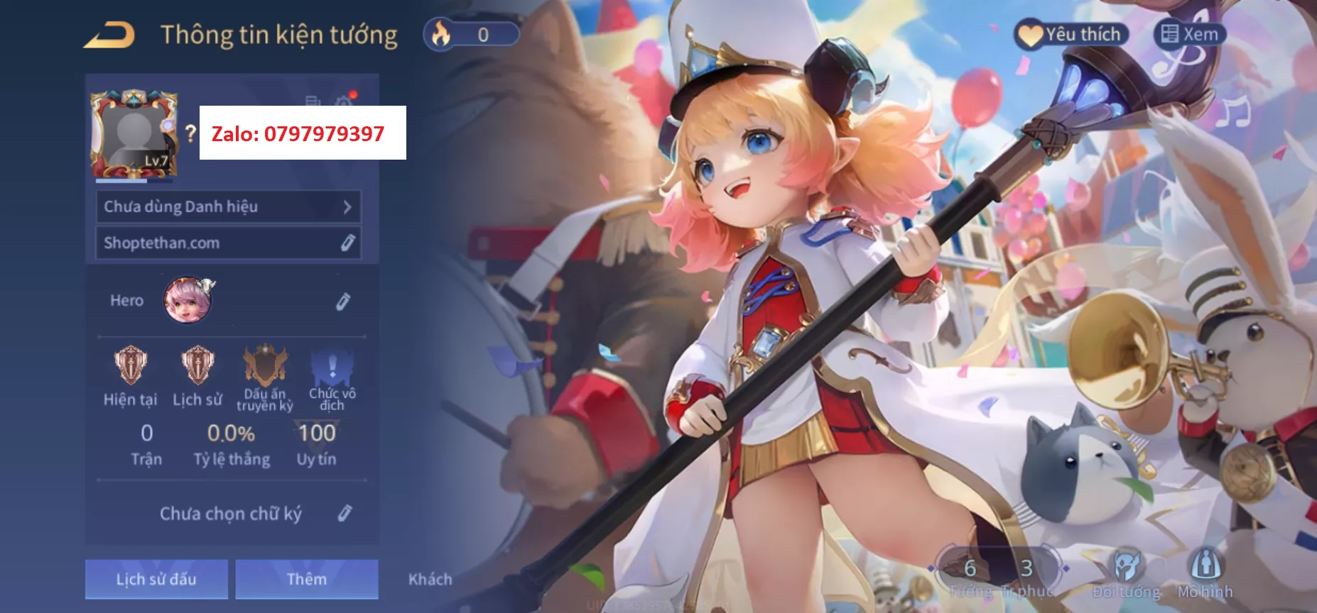 Ảnh ACC REG LIÊN QUÂN: Alice quân nhạc Athanor, sẵn tướng, trắng thông tin, free đổi tên