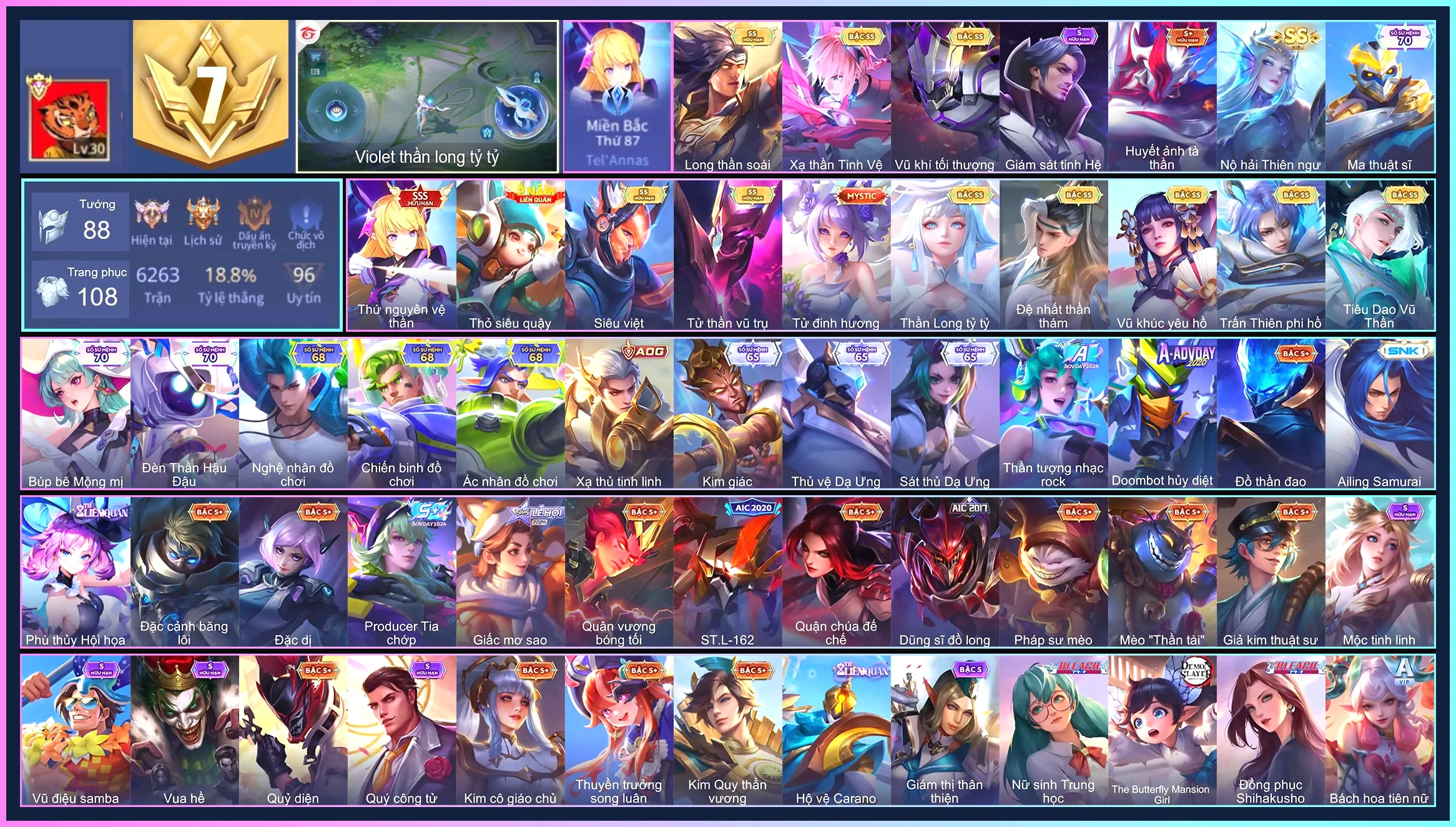 Loại acc | MUA ACC LIÊN QUÂN VIP: SKIN SSS, ANIME, CỤC VÀNG, MÁC THÁCH ĐẤU |
