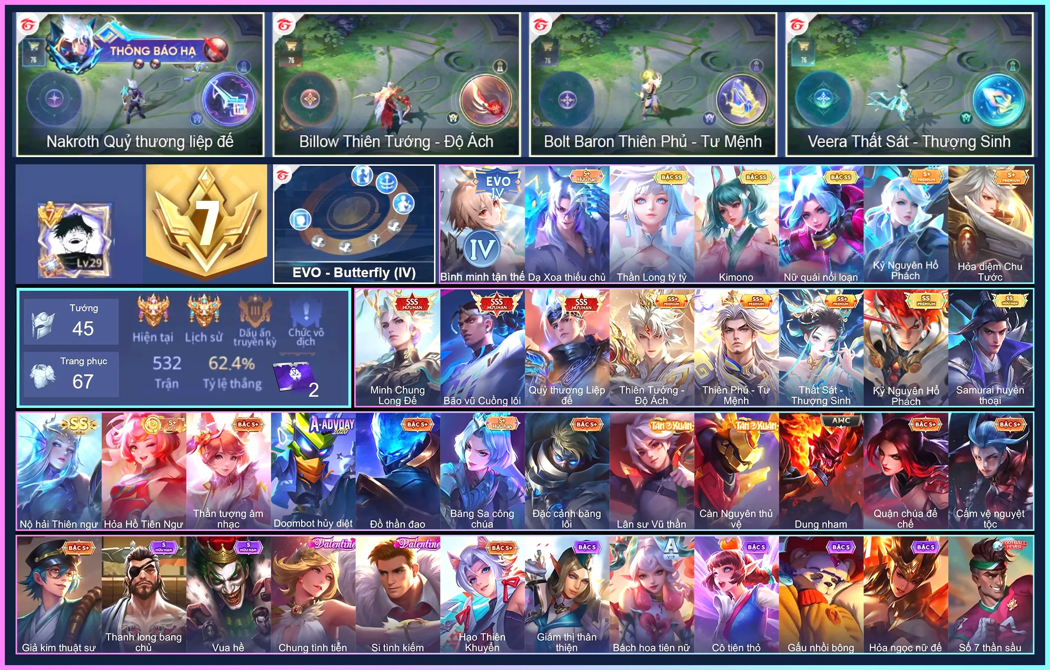 Loại acc | MUA ACC LIÊN QUÂN VIP: SKIN SSS, ANIME, CỤC VÀNG, MÁC THÁCH ĐẤU |