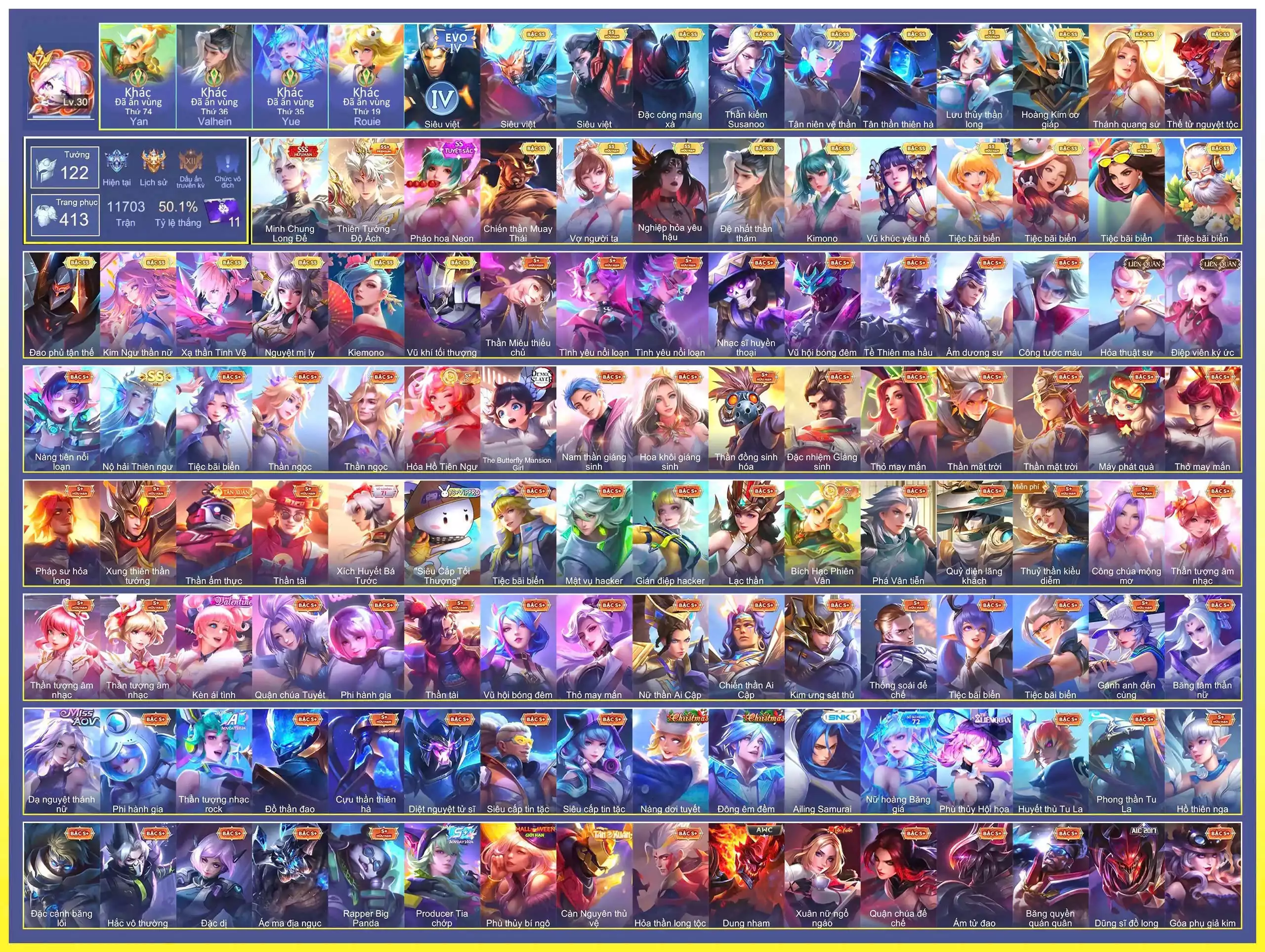 Loại acc | MUA ACC LIÊN QUÂN VIP: SKIN SSS, ANIME, CỤC VÀNG, MÁC THÁCH ĐẤU |